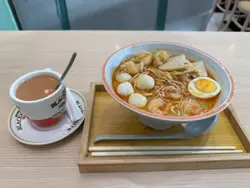 今次食呢碗喇沙汤底香辣,有虾、鱼蛋、炸鱼皮、蛋同米粉,非常丰富。旁边杯系丝袜奶茶,茶味滑顺带甜,正宗港式茶餐厅风味。整体系大本型茶记研究所招牌下午茶组合,本身都好受欢迎!🍜Read More