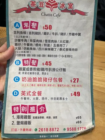 茶豆冰室Chatto Cafe-深水埗北河街134-136号银河大厦地下B号舖爱上吃德国咸猪手之旅,源起是一次与小丝去了宜家家私的餐厅吃他们的德国咸猪手,一试就爱上了。之后的日子里都吃过不同食店的德国咸猪手,自已偏爱是外表是黑椒味,脆皮+肉是带咸味的。有一次再去令我爱上德国咸猪手的发源地宜家家私餐厅,己经没第一次试的时候好吃。因为肉欠缺咸的味道。今次给我找到一间在深水埗的茶记竟然有德国咸猪手,而且价钱很便宜,那就当然要Call埋小丝飞去试试。这里的铁板餐若铁板上菜是要加钱,很奇怪的设定。我是点了餐之后才知道,若点餐前知名我必定会加钱要铁板上,因为铁板对于锯扒来说都几紧要。肉眼扒+什菜沙律+冻饮($83)因为不是铁板上,所以卖相真的是大打折扣,甚么气氛都没有了,这个肉眼扒太薄了,只是早餐牛扒厚些少而已。最眼突的是那个什菜沙津,根本就是茶记的沙津,薯仔+红萝卜+沙津酱。好像在吃下午茶餐似的。幸好大爱仁慈的小丝说味道都不错那就算了。而且还漏了给我们洋葱汁,当晚客人已不多,但仍有漏单的情况,真不知员工在做甚么工作。德国咸猪手(半只)+薯条+冻饮($83)目测咸猪手的份量很足够,食的时候份量真的很足够,而且还有不少配料,非常饱肚。但这只咸猪手味道不太足够。肉身没有味,咸猪手应有的咸味都没有。胶质很足够,但皮不脆,不是我期望的咸猪手。幸好有黑椒汁配咸猪手来吃。阿伟食价:价钱虽平,但出品,服务都是一般。推介指数:6/10…查看更多