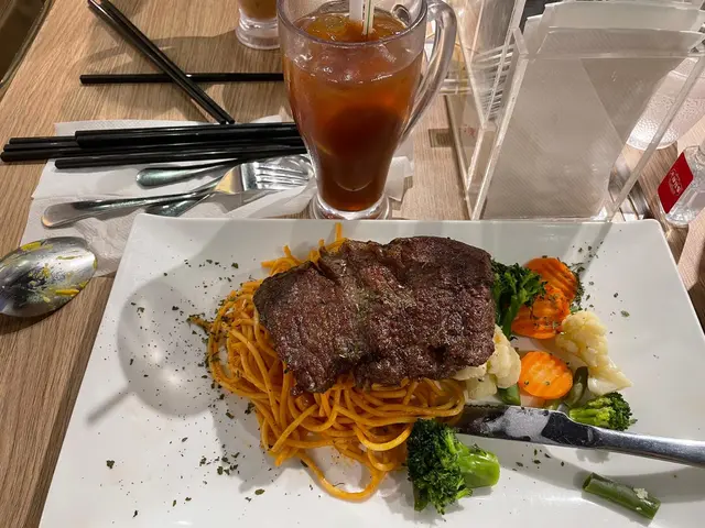 五成熟牛扒意粉加凍檸茶