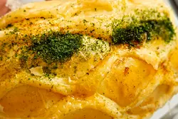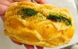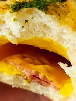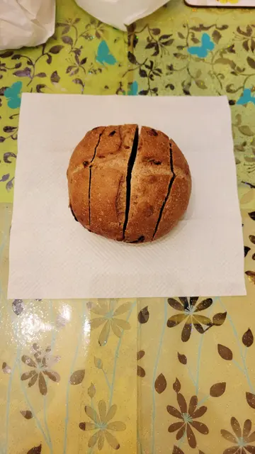 经过这间店,被一排弧形透明玻璃柜内的面包吸引。款式很多,不知选那一款好。店旁有一款流心面包推介,南洋椰香咖哩粒粒牛舌酥,图片太吸引,于是选了这个,然后再要了一个桂圆核桃酸种包。每个包都个别包装,圆形的那个店员会问你是否要切开。开开心心带回家品尝,桂圆核桃拿上手分量十足。按袋上翻热方法加热了,口感厚实,面包好内有桂圆肉粒和核桃粒,不太甜,味道不错。最期待个酥,翻热后切开一看,大失所望,流心在那?只有肉粒满满却一点流心也没有。幸好酥饼的口感软熟,牛油和咖哩香味浓厚,一层一层酥皮带少少脆口。不是不好吃,只是图片太误导。…查看更多
