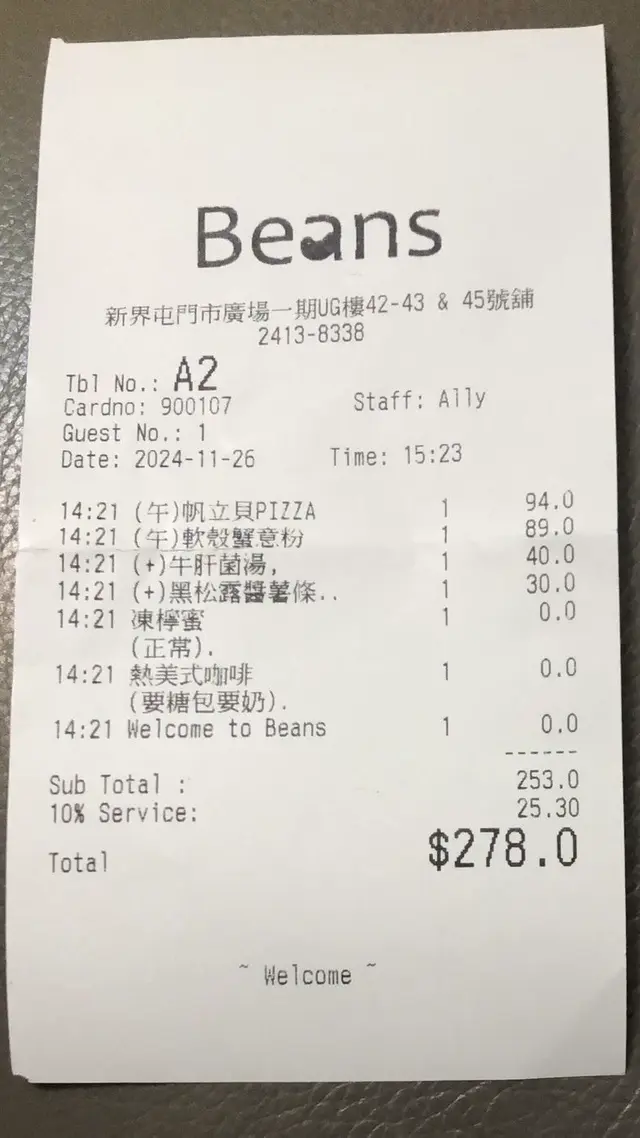 試過幾次唔同branch嘅BeansCan confirm that Bean's coffee really is not my cup of tea 😂😅I am a coffee lover but only for quality coffee... I don't like the coffee from Beans... I have tried cappuccino, hazelnut mocha, creme brulee latte/coffee... I like none of these. I would give it an unpassed score and I could only finish half cup of it due to the flavour and the coffee temperature.The environment/+sitting of Tuen Mun branch is ok. I had breakfast this time and the temperature of food is soso...The waitress was so(too!) aggressive that she asked me if I was going to pay the bill 😢😱while she only saw me getting something(not wallet) from my bag but I still had half cup of unfinished coffee on table plus had zero action/sign to look for staffs 😱整體而言, 我只會給僅僅合格分數(given that no need to queue up at 8:30am) …查看更多
