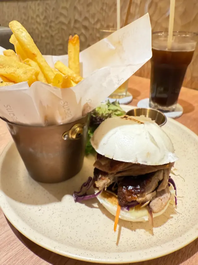 平時長期都有人排隊的,行過見到lunch set 都幾吸引,時間尚早沒人排隊可以馬上入座,選擇了#京式燒鴨饅頭漢堡#手撕豬仔骨漢堡焦糖洋蔥太陽蛋薯蓉 飲品配凍檸蜜及凍美式咖啡(不用加錢)兩份漢堡搭配的醬汁各有特色,也開胃好吃,薯條香脆,薯蓉味道也佳,各樣配菜也配搭適宜!職員有介紹入會,入會有迎新禮物是甜品一款,選了#Creambrûlée 擺碟及味道不錯,法式焦糖燉蛋不太甜,配搭了朱古力蛋糕及爆谷,熱熱的朱古力蛋糕很好吃!…查看更多