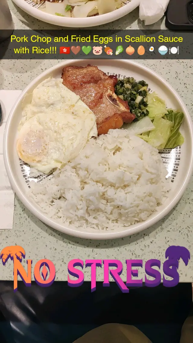 Pork Chops and Fried Eggs in Scallion Sauce with Rice!!! 🇭🇰🤎💚🐷🥩🥬🧅🥚🍳🍚🍽️