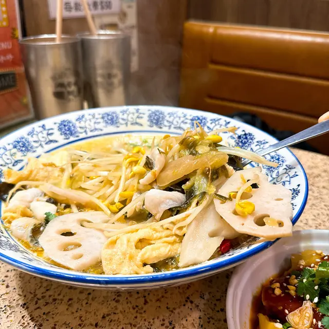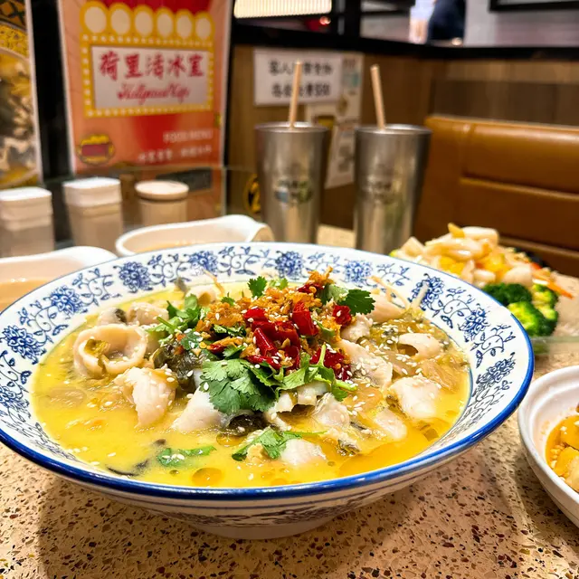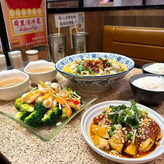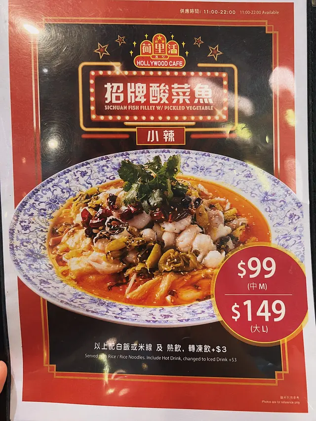 前排突然好想食酸菜魚,原本諗住搵間川菜館,點知行過荷里活冰室,見到佢menu竟然有酸菜魚!😲 一間茶記有咁特別既菜式,真係好吸引,於是我同朋友即刻入去試試,睇下呢間茶記點樣將酸菜魚整出新火花!🍲.招牌酸菜魚 $99招牌酸菜魚一上枱,已經聞到陣陣酸辣香氣,湯底呈金黃色,望落就知好有料!😍 湯頭酸度同辣度岩岩好,酸菜既酸香同辣椒既微辣交織,飲一口暖胃又開胃,味道濃郁但吾會過鹹,仲帶點清爽既回甘。魚肉超多,片片都厚實鮮嫩,入口滑溜,咬落去完全無腥味,仲有陣陣湯汁既鮮味滲出,超滿足!🥰 配料方面有芽菜、腐竹、木耳同蓮藕,芽菜爽脆、腐竹軟滑吸湯、木耳彈牙、蓮藕帶點粉糯,每款配料都吸晒湯底精華,層次好豐富。而米線Q彈有嚼勁,掛湯能力一流,每條米線都浸滿酸辣湯汁,食落每啖都係精華!份量仲好大碗,2-3人share都絕對夠!套餐仲包埋熱飲,轉左凍奶茶(+$3),奶茶香滑濃郁,茶味同奶味平衡得好好,飲落去同酸菜魚既刺激口感形成完美對比!🥤.薑粒菜圃炒飯 $58薑粒菜圃炒飯真是一個驚喜發現,吾係間間茶記都有呢款炒飯!😎 炒飯粒粒分明,乾爽吾油膩,入口即化又帶點鍋氣。薑粒既清香同微微辣味係靈魂,咬落去帶點脆口既質感,配上菜圃既鹹香同微脆,味道層次即刻提升!蛋花軟滑,菜心粒爽脆,兩者點綴炒飯,增加左口感既豐富度。整體炒飯好香口,比一般炒飯有性格得多,食完一啖即刻想再食下一啖!😋 加配左杯凍檸檬(+$6),酸甜清新,檸檬既清香同炒飯既濃香好match,解膩之餘仲令人胃口大開!🍋.炸雞中翼 $30炸雞中翼係茶記小食既經典之選!外皮炸得金黃香脆😍 雞翼皮薄而脆,帶點鹹香同微辣,味道惹味但吾會搶左雞肉本身既鮮味。.丹麥多士 $12外層金黃酥脆,內裏軟綿綿,帶點奶香同蛋香,簡單得黎好滿足!入口即化,奶香同酥皮完美融合,甜度岩岩好😍…查看更多