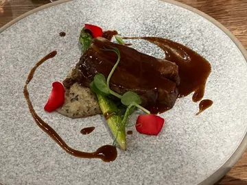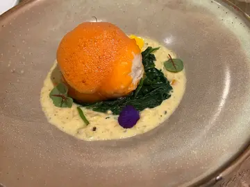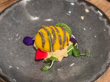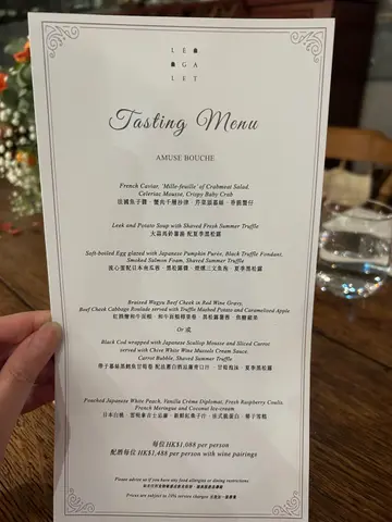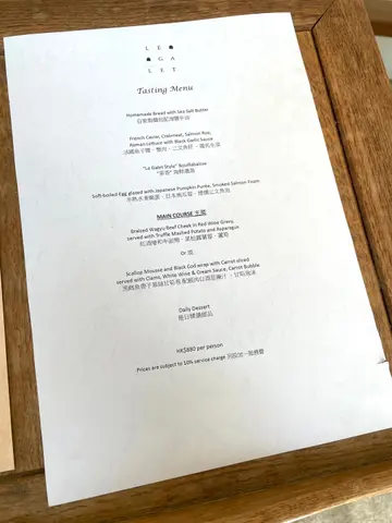 香港茶香(Le Galet) 晚餐Set HKD$880 (+10%服务费) 哥德风的精致欧菜餐厅古典优雅的欧洲木制家私,配上旧化效果的装潢,餐厅内布置满古董摆设,好像到了哥德式教堂,又带点博物馆的高雅,古色古香!每季菜式因应时节变化,尽显主厨心思及功力!Carabineros Prawns (西班牙红虾)西班牙红虾加上沙律酱料,再用曲奇皮盛上。精𡟹而典雅的卖相,红虾清甜,配微酸的沙律酱料,再混合脆卜卜的曲奇皮,清爽开胃的小食。Homemade Bread with Sea Salt Butter(自家制面包配海盐牛油)脆脆果仁加上粗糙烟靭的面包皮,内𥚃软绵的正宗法式面包,口感一流,配上微咸的海盐,再加上牛油的香甜。友人都惊讶于我这个不好面包的人,竟然能吃完整个面包。French Caviar, Crabmeat, Salmon Roe,Romaine Lettuce with Black Garlic Sauce(法国鱼子酱•蟹肉•三文鱼籽 •罗马生菜)新鲜的罗马生菜,整整齐齐的放上鱼子酱丶蟹肉及三文鱼籽,色彩斑斓鲜艳,视觉上的盛宴。新鲜清爽的生菜配上咸咸的海鲜味,再提升一个层次,鲜味上的天花板。"Le Galer Style" Bouillabaisse("茶香”海鲜浓汤)类蕃茄味的海鲜浓汤,口感非常creamy,味道浓郁厚实,跟清甜的鲜虾,形成强烈对比,又带点画龙点睛的感觉。Soft-boiled Egg glazed with Japanese Pumpkin Puree, Smoked Salmon Foam(半熟水煮嫩蛋•日本南瓜蓉•烟燥三文鱼泡)流心的水煮蛋,Q弹的外皮,加上入口溶化的三文鱼泡,口感特别,味道丰富复杂。主菜(二选一)Scallop Mousse and Black Cod wrap with Carrot Slicedserved with Clams, White Wine & Cream Sauce, Carrot Bubble黑鳕鱼带子慕丝甘笋卷 配蚬肉白酒忌廉汁 •甘笋泡沫甘笋泡沫一个一个的在口中爆开,口感轻盈而细腻,清甜的甘笋味道慢慢混进黑鳕鱼及带子慕丝,再加上白酒忌廉汁及蚬肉,清爽而细致,海鲜及蔬菜的完美配搭!或Braised Wagyu Beef Cheek in Red Wine Gravy, served with Truffle Mashed Potato and Asparagus(红酒烩和牛面颊 •黑松露薯蓉 •芦笋)口感细嫩的和牛面颊,烩上红酒的甜,黑松露薯蓉的香,芦笋的鲜,层次分明而复杂,令人难以忘怀的菜式!甜品水果拼透明啫喱用饼状的透明啫喱包裹青提子,上加忌廉及橙皮,再配上士多啤梨,七彩缤纷,视觉大满足。…查看更多
