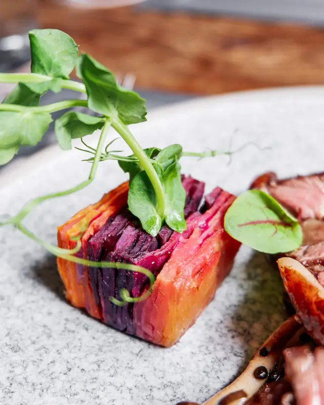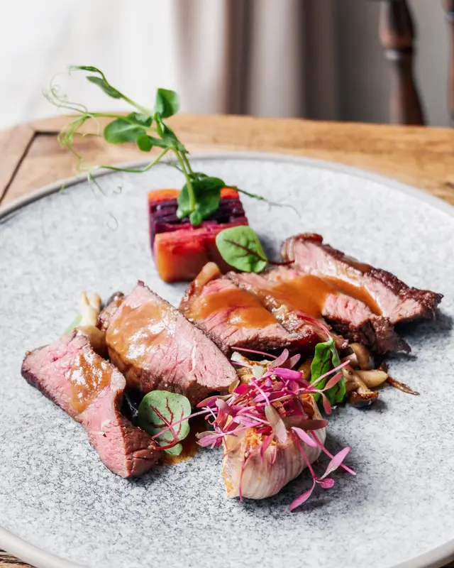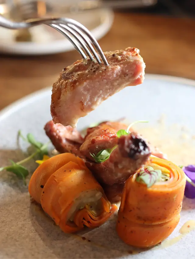 伊比利亞豬鞍架配芥籽醬 •松露雜菜卷