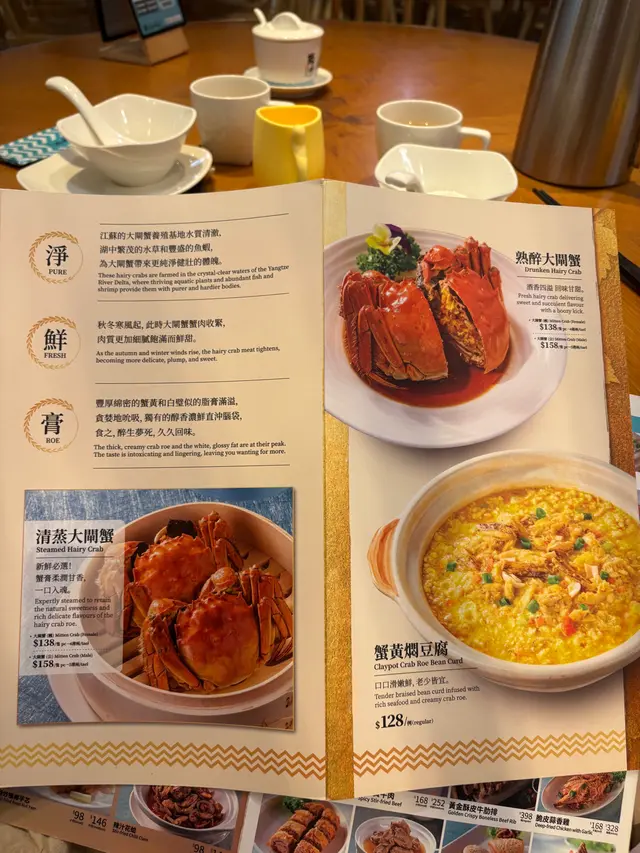 撈汁哆頭蟶. 冬瓜哆頭蟶湯. 古法黃魚湯撈麵線 桂圓檸檬烏龍茶 酥炒芋芯 桂花陳皮燉雪梨 雪耳湯
