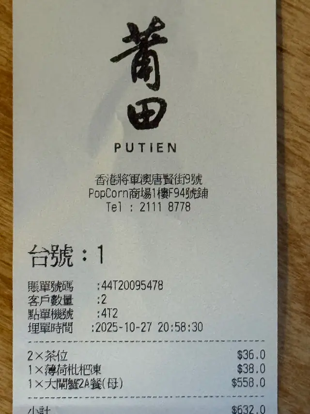 莆田 (PopCorn 2) (将军澳) 网上订位即赚Rice Dollars 网址: https://s.openrice.com/QrLS0Iom700 地址: 香港將軍澳唐俊街9號PopCorn 2 1樓F94號舖 电话: +852 21118778