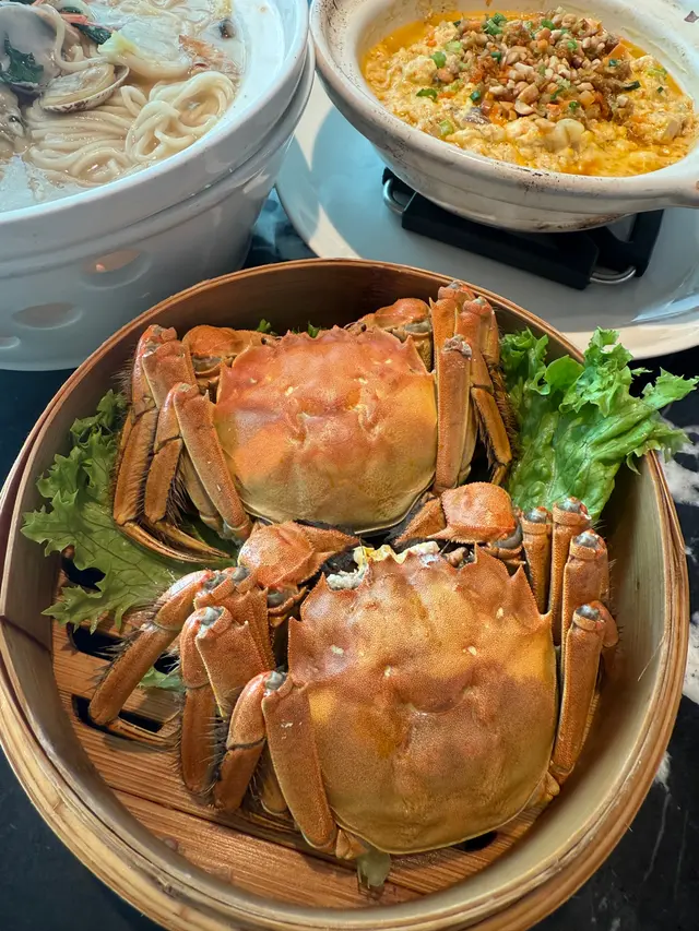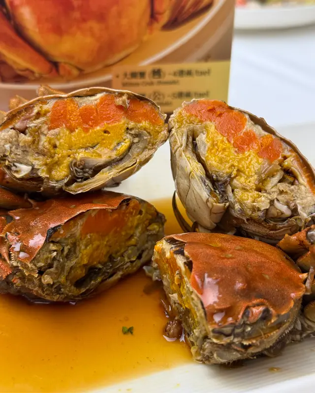 大閘蟹1人餐🌟推介🌟勁抵食蟹乸($368)蟹公($398)清蒸/熟醉大閘蟹,(任選1款,2隻)套餐有前菜、大閘蟹2隻、主食同薑汁紅棗燉雪燕-前菜:頭水紫菜同家鄉炆筍乾-主食可以揀福建海鮮滷麵/興化炒米粉/經典包菜飯,今次都係揀番福建海鮮滷麵,因為麵線軟軟腍腍,海鮮嘅精華入哂麵條,內有蝦🦐、蜆同蟶子等-主角大閘蟹!!!揀咗熟醉大閘蟹大閘蟹乸身形圓潤,蟹黃豐滿,色澤金黃,而且好甘香,配搭花雕酒浸泡,香氣洋溢,連蟹肉麵有陣陣酒香!-薑汁紅棗燉雪燕食完大閘蟹當然要飲杯薑茶,除薑茶外,仲有呢個糖水,暖心滋補。**********鐵板滑豆腐🌟推介🌟每粒豆腐先炸,再放上鐵板加醬汁,原來內有乾坤,鐵板底仲有蛋漿,夾埋一齊食有唔同口感!醬汁微辣,好開胃🤤**********百秒黃花魚($78)🌟推介🌟必定會叫!魚肉滑嫩,鮮美多汁**********椒鹽豬手($78/2隻)外皮炸到好脆,豬手又特別多肉,中間連住嘅筋好軟腍,加埋調味…惹味!…查看更多