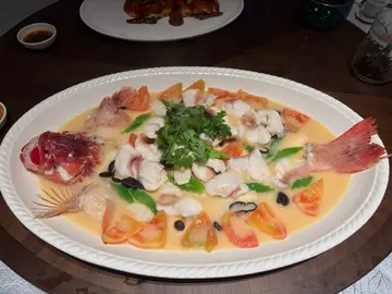 今日去左位于奥运既香港遨凯酒店中菜厅「莫云」享用晚餐,由曾任香港百亿富豪私厨的雷师傅主理,擅长以灵活创新的烹调手法将潮州菜的精髓与粤菜融合重新演绎叉烧.酥鱼.圣女果半肥瘦叉烧、爆汁番茄仔、炸鱼,份量少少,作为前菜真系最好不过糯米酿脆皮乳猪脆皮乳猪一d肥膏都食唔到,糯米既软糯同脆猪皮口感上形成强烈既对比天子兰花炖响螺汤天子兰花既清香加上响螺、鸡等等既材料炖制而成,清甜得黎,味道浓郁竹炭粉日本关东辽参辽参真系海参之首,用上竹炭粉包住辽参,造出酥炸既口感,入面就系弹牙既辽参,再配上上汤,特显大厨功架既一道菜X0酱淮山煎让羊肚菌羊肚菌酿左虾胶,以XO酱爆炒,连配菜淮山、莴笋都好惹味脆米海鲜汤浸东星斑原条东星斑切片,下面垫有白萝卜,中间放了脆米,再淋上海鲜汤,东星斑片好嫩滑,整碗鲜味十足瓦罉泰安新鲜豉油鸡未开盖前赞酒再点火,满满的仪式感,选用本地泰安鸡,鸡味特别浓郁厨王单脚炒饭饭望落又幼又长,以为口感会带硬,点知食落系好软腍,好有惊喜 (惊喜到唔记得左影相🤣)上汤意大利珍珠浸时蔬意大利珍珠其实系薏仁,味道带甜,真系好似珍珠咁闪闪放亮木瓜雪耳糖水贺岁莲蓉寿桃包每道菜都系大厨别出心裁制成,食材用料上乘,色香味俱全,唔系今晚既饭局都唔知奥运原来有间咁高质既中菜餐厅…查看更多