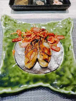 菊月町喺观塘已经有好耐历史,未搬舖前已经帮衬过铁板烧,而家搬咗舖环境更加靓,通风又做得好好,分开铁板烧同omakase座位,但又可以同时欣赏到 师傅嘅厨艺,真系赏心悦目。我哋叫咗两个铁板烧套餐,分别拣咗美国安格斯薄烧 $438,加拿大羊架 $538。套餐包括前菜,茶碗蒸,银鳕鱼,广岛蚝,原只虎虾,时令铁板配菜,炒饭,炒杂菜,汤及甜品。茶碗蒸配有松茸,非常特别,蛋香嫩滑。银鳕鱼外脆内嫩,感觉惊艳👍广岛蚝烧得焦香,肥美饱满;虎虾非常大只,配埋虾膏酱汁,鲜上加鲜。安格斯嫩滑富牛油香,卷著蔬菜中和油腻感;羊架厚肉,伴碟的蔬果中和羊膻味。炒饭粒粒分明,尽显师傅功架。最后以豆腐雪糕作结,清新味蕾,为依个晚餐划上完美句号。评分:最高为5分治愈度:👩⚕️👩⚕️👩⚕️👩⚕️👩⚕️抵食度:💉💉💉💉💉翻兜指数:🩺🩺🩺🩺菊月町观塘鸿图道23号利登中心地下1号舖📍牛头角港铁站B6出口4分钟路程#healingbobo #foodie #hkfoodie #foodiehk #香港 #美食 #日本菜 #teppanyaki #铁板烧 #KwunTong #观塘 #NgauTauKok #牛头角 #菊月町…查看更多