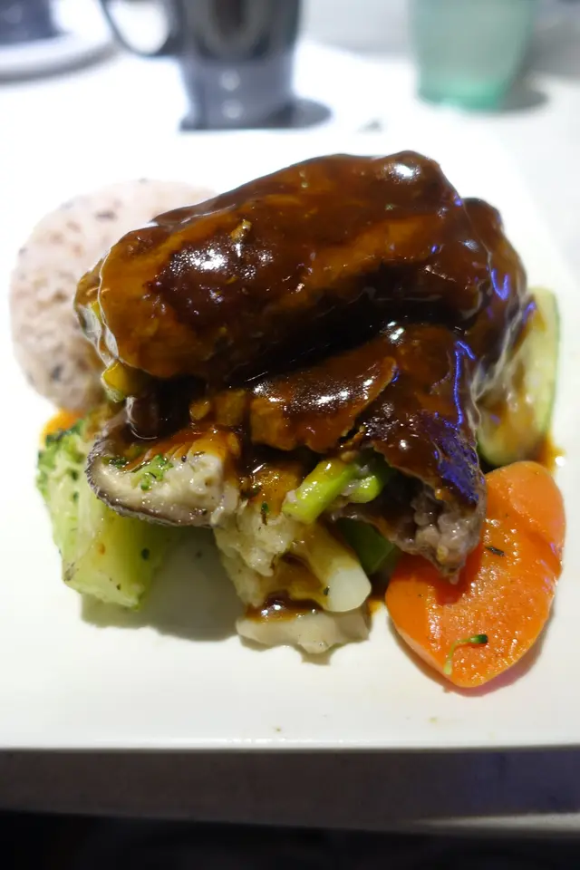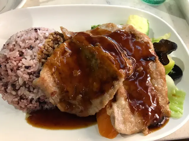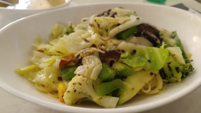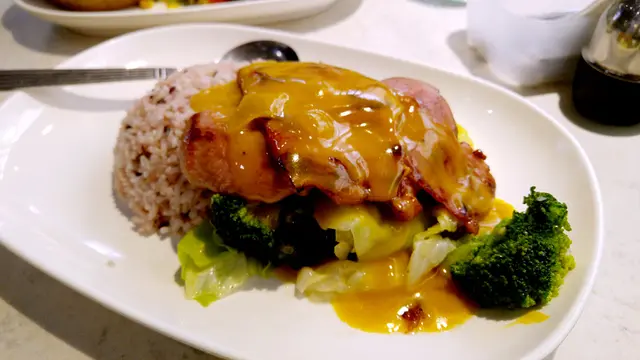 這店好耐之前還在廣東道尾有鋪時已經見佢每日午餐時段經常有人龍,生意算幾好, 至後來整條廣東道因為自由人的關係,租金番上幾倍後街鋪盡變金鋪,表鋪,名牌二手店同藥房, 做小生意嘅食肆只有上樓那條路, 而這店上來這平台都應該有幾年時間了, 老闆可能都轉了人吧, 生意應該無做街鋪咁好但相對租金壓力也少一點吧, 週末下午的午餐時間多不過五枱客, 所以環境是沒得說的清靜了, 適合想靜靜地跟朋友傾下偈, 因為這裡出嘅餐比較簡單, 一個餐湯跟住主菜, 跟住就係餐茶, 要快也可以很快, 我們當天叫的是: 腰果沙茶醬板煎雞扒配有機紅糙米飯$62, 有機紅糙米唔算太粗糙當白飯食可以了, 腰果沙茶醬唔太覺腰果就當普通沙茶醬可以了, 雞扒算不乾不嚡有少少Juicy份量也剛剛好, 西班牙素丸子雜菜炒意大利麵$61素丸子就是豆類做的比較上有咬口的麵糰配埋個甜甜地嘅汁基本上可以當食緊肉丸, 但當然唔有有肉的甘香亦唔會有肉的纖維啦, 雜菜就係樣樣都有d咁啦, 餐茶算過得去沒什麼好與壞了, 不過在這區咁嘅環境又唔係太貴, 除咗那兩大餐飲集團之外, 大家都可以負擔得起, 這店都算係唔錯嘅選擇!查看更多