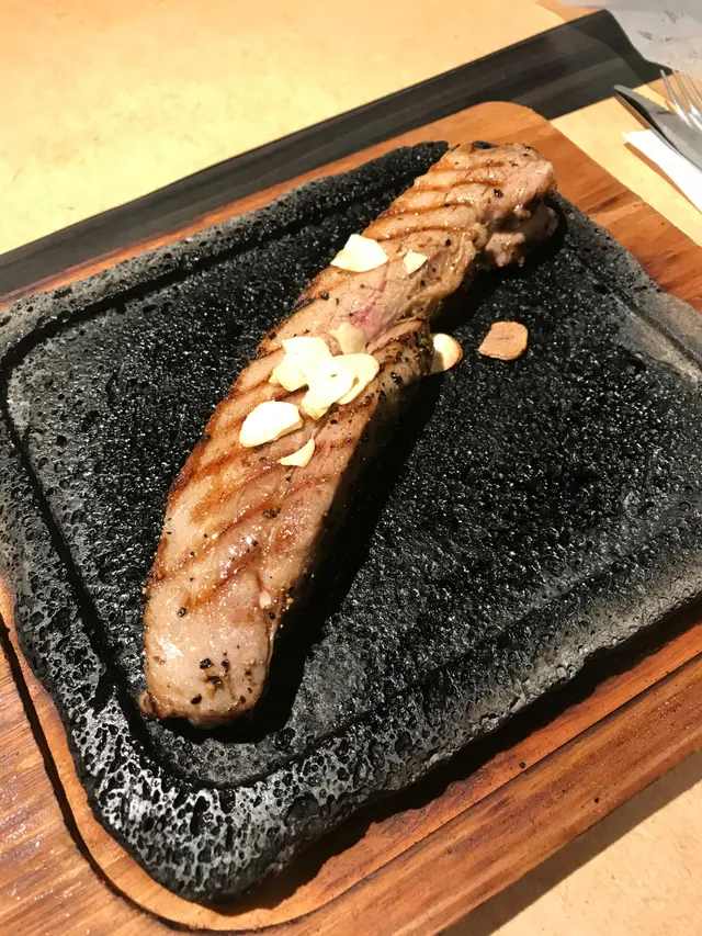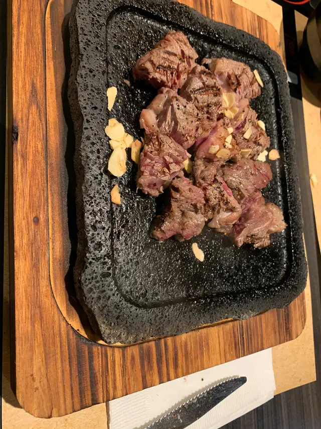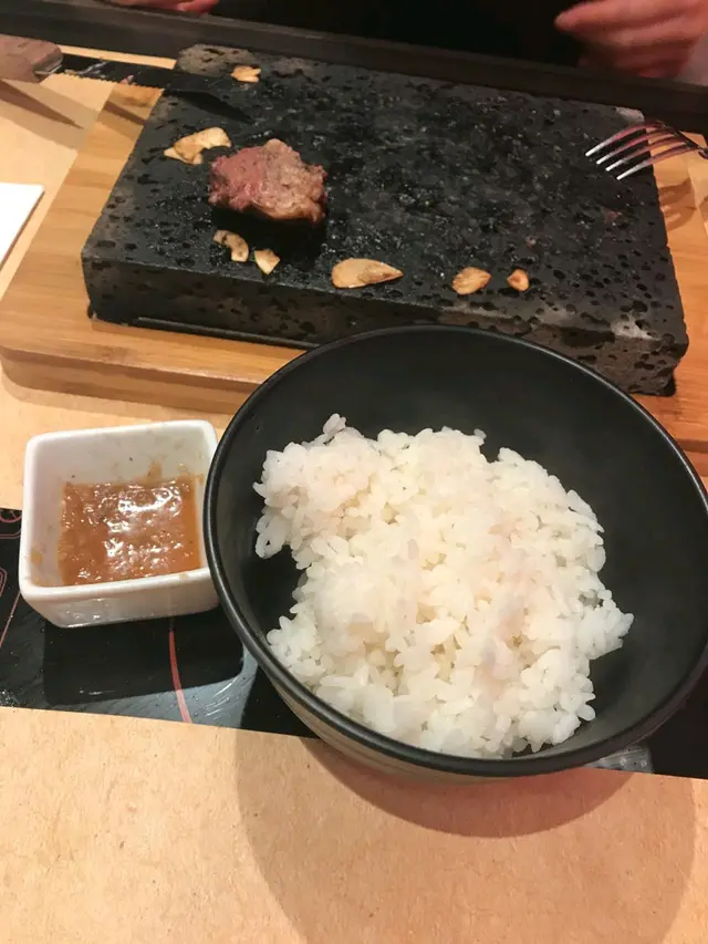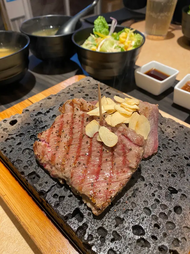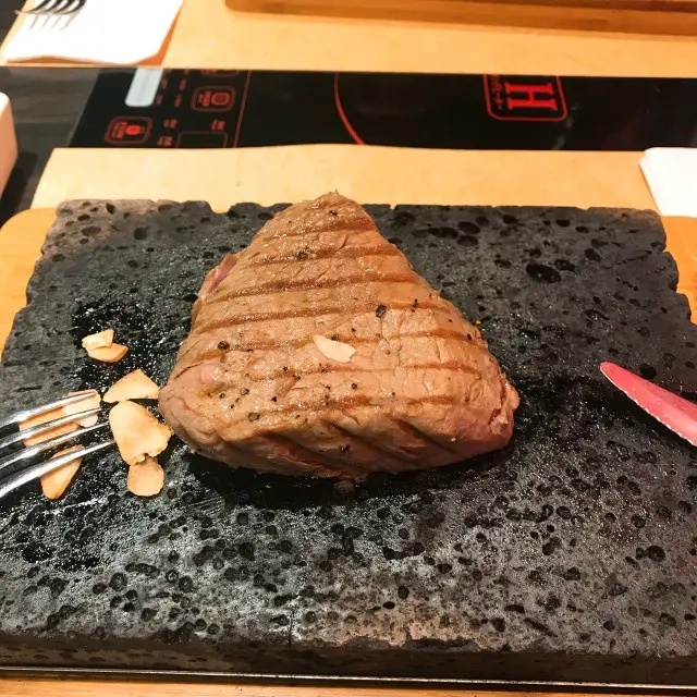 T.O.P. 商場呢間餐廳本身係打邊爐, 唔知幾時開始轉左食石燒牛, 見到個樣幾吸引, 同埋又有午市, 所以入去試下美國三角肩拼牛柳石燒牛送到上來熱辣辣, 聽到炸炸聲, 食石燒牛好處就係可以自己控制牛肉生熟度, 食生d又得, 熟d又得! 牛柳肉質軟嫩, 好有牛味, 都幾juicy! 牛柳上面仲鋪左幾塊蒜片, 食落再香口d!出面自助吧放題有白飯、麵豉湯、沙律菜、飲品 & 雪糕, 唔怕食唔飽! 沙律醬汁都有幾款提供: 柚子汁、蒜蓉汁、芝麻汁,唔錯! 飲品就有汽水同咖啡, 如果想飲啤酒就要另外加錢整體餐廳環境乾淨衛生, 坐得都幾舒服, 食物都唔錯呀! 查看更多