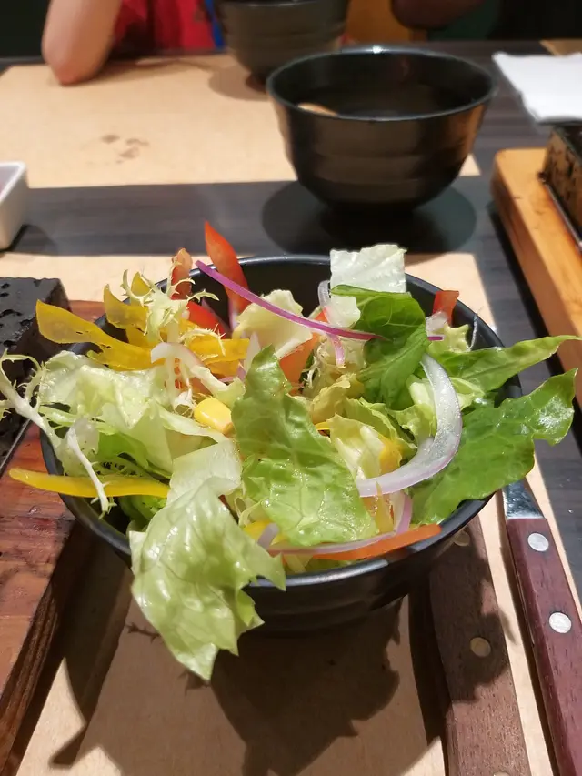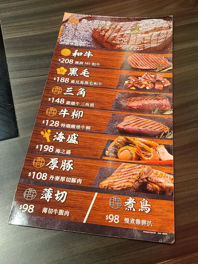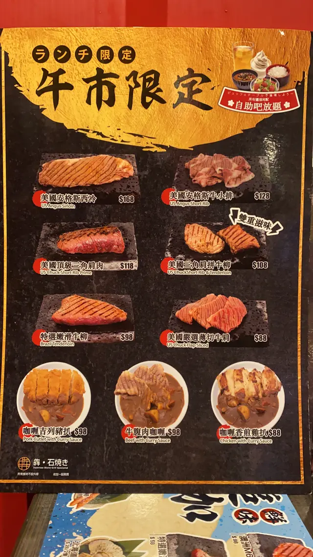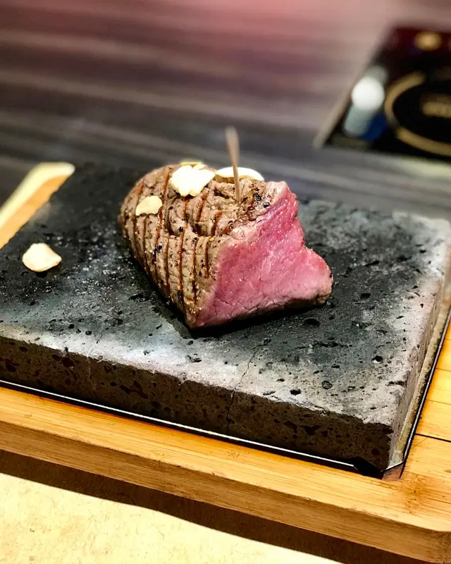 呢個半自助石燒,非常簡單。一款自選肉(定食),再加任食的魚介味噌湯,珍珠飯,沙律,冷熱飲品同軟雪糕。重頭戲石燒主打牛肉,由$98的薄燒牛內腹肉,$118的牛柳,$148的三角肩,$178澳洲M6和牛及$208的日本黑毛都有。非牛選擇也有$98的雞扒,$118的豚肉扒及$198海鮮盛。牛魔王可以平平地食牛腹肉,也可以豪少少食M5和牛。唔食牛都有3樣其他選擇。沒有花巧,上的就是一塊熱石和你所點的肉。點牛肉的話有會有炸蒜片。早期用的石板儲熱度比較好,但近期轉用了較堅固但儲熱度稍遜的石板,呢一點對於喜歡食熟啲的客人就覺得不夠過癮!自助吧有4款用LC盅仔裝的醬汁(這就是細節!),我覺得柚子味最正,可加少少落沙律度食。我試過牛腹肉、牛柳、海鮮同M5澳洲和牛。我覺得牛腹肉稍肥,牛柳夠腍多汁性價比高,M5澳洲和牛超好食!呢種質素的和牛,自己買返屋企煎都要成$200一塊。海鮮都很豐富,有龍蝦大蝦帶子蟹柳和蠔,最欣賞隻蠔,好多汁好鮮!無可否認,佢嘅半自助選擇不多,但質素都不俗。沙律有雜菜,紫洋蔥,紅黃甜椒,茄仔同粟米,七彩繽紛幾吸睛,菜保持冰凍爽脆,本身已經輕輕撈了醬汁,單食已經美味,另備有一支凱撒沙律汁更畫龍點睛。呢間石燒其中一個吸引我的地方,就是呢個沙律!佢啲菜嘅爽脆冰凍,我敢說很多酒店都做唔到!非不能也實不為也。呢度認真到用透明保溫箱裝住,仲有個蓋,乾淨衞生又保溫。有很多沙律吧,90幾款醬汁,但無款好食,真係好多餘。沙律,汁醬真的其次,最重要的是個菜本身是否爽脆多汁,是否夠乾爽冰凍。呢個沙律,我是一坐低就要先食兩碗的!珍珠白飯以任食而言,質素算不過不失。魚介味噌湯有很多昆布,熱騰騰的也不錯。呢度我一星期都會去一次,連個侍應哥哥已認得我。我成日嚟的原因,是呢度的食物好合適我兩公婆的需要。老公不食生肉,出街食牛,講左好多次要全熟,切開永遠見血水🤦🏻‍♀️,食石燒可以自己控制燒到熟晒。佢是個飯桶, 有湯有肉有飯基本上已經滿足曬佢嘅需要。 我自己呢,同好多女士一樣,夜晚就唔鍾意食太多澱粉質,所以佢呢度有沙律又有燒肉可以唔駛食飯真係好啱我口胃, 食完和牛加沙律都無犯禁,好開心😂。有人可能會覺得得一件牛肉好像很少,睇你點睇啦。食餐晚餐,一件8安士左右的牛扒算是正常出街鋸扒的份量,唔好將佢想成「得一塊肉」的燒肉放題而想成「任食side dish白飯同湯任裝」的牛扒餐個感覺會良好好多。我都試過牛角lunch燒肉定食,價錢差不多,整體而言牛角勝在side diah吸引(佢有必殺技牛角飯😂),但講到牛肉反而呢度更勝一籌。呢間餐廳之前呢係做一人一鍋嘅,唔知係咪因為疫情關係,轉咗做石燒。疫情過去唔知道佢哋仲會唔會繼續提供石燒呢?我未試過佢地嘅火鍋,見評價都唔錯,希望佢哋之後可以兩樣都有, 咁就最完美喇。查看更多