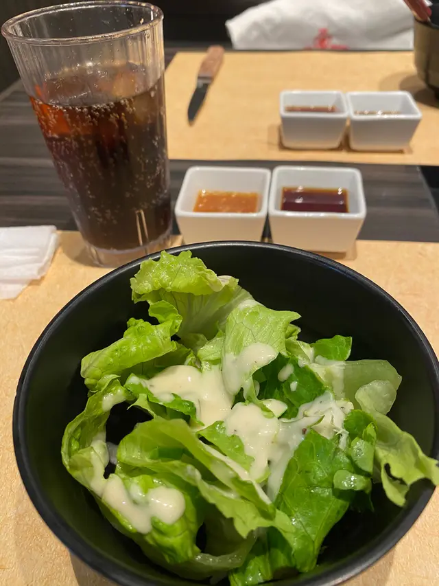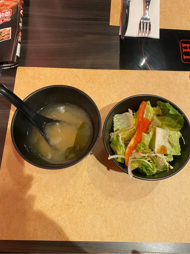 見到話半自助,好似幾正,就入去試試佢。我哋嗌左個三角牛同埋厚豚。唔使5分鐘,d 肉就好快到。塊牛都正常水平都幾好食,塊豬肉都好爽口都幾好食(但要小心,一開始攞出嚟嘅時候,塊豬係有啲生,要等佢喺塊石上面再自己燒多陣先可以食)。佢出面啲半自助得,嘢飲 (有可樂汽水、檸檬茶、雪梨汁、巨風提子汁,啤酒要另外計錢)、雲呢拿雪糕(有少少膠味🙂)、沙律菜、白飯、麵豉湯。比我想像中少⋯⋯呢間野😀 個人認為食一次,試過就夠~查看更多