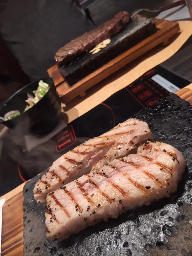今日係我哋為四女團嘅新年團拜,點都要搵間有聲有色餐廳賀賀佢。我講緊係石頭放係石頭上面燒到吱吱聲,認真過癮!🤣犇·石燒啱晒我哋三位都係牛控一族。🍴先去自助吧攞齊沙律菜,麵豉湯,再去自由斟,咖啡、汽水、檸茶檸水飲完再斟。🤣🍴美國三角肩拼牛柳 $108二塊牛都比較薄左小小,但牛味香濃嫩滑,五成定七成熟自己控制。🍴特選嫩滑牛柳 $98我就比較喜歡牛柳,脂肪較少又不失軟嫩口感,入口係鬆化又富肉汁。🧁食完仲有自由斟雪糕,雪尼拿味正呀!🤣石燒通常都比較多油煙,不過勝在坐得舒服。查看更多