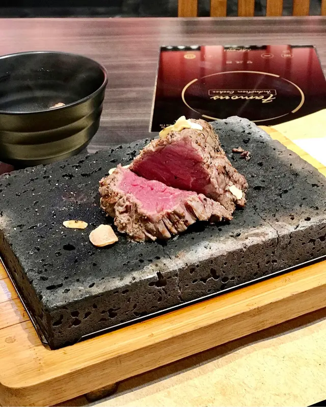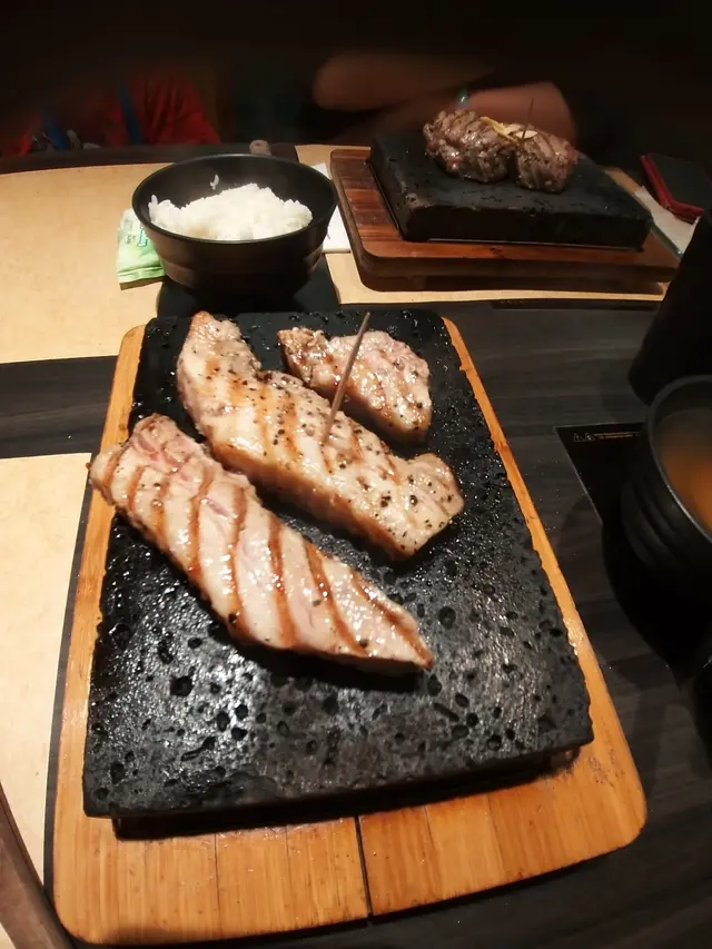 今天與好姊妹到旺角吃飯,說想我順道陪同他到 T.O.P 商場閒逛一下,購物過後,我們便同時在此用膳,留意到這間日式石燒頗為吸引,又有放題提供,就選定了此餐廳。餐廳的套餐是只要點選了一塊主食肉扒,便可享放題。食物的種類有沙律、魚介麵鼓湯、珍珠白飯,亦有提供四款醬汁供顧客調味,分別有海鮮醬、柚子汁、蒜蓉汁、芝麻汁,放題區還有一個飲品枱,主要提供即溶黑咖啡、雪糕、熱茶等。黑毛好姊妹選擇了鹿兒島黑毛和牛,上桌時香氣撲鼻,而且貼心地把肉塊分切開,和牛頂部亦放有少量蒜片作伴碟,我小嚐了一塊,和牛肉質軟腍嫩滑,牛味香濃,而且入口幾乎即化,不需花太多時間咀嚼。牛柳我點選了特選軟骨牛柳,上桌時是一整塊未經切開的,牛柳入口肉味濃郁,但較為韌身,需要花少許時間才可咀嚼吞嚥,而且肉汁不多,或許是因爲錯過了最佳的食用時間,因此肉質過熟。魚介湯魚介湯是放題的其中一款食物,它的色澤呈現黃色,入口口感濃厚豐腴,味道芳醇鹹鮮,魚味甚濃,吃完主食後用作緩和解膩也挺適合的。整體而言,餐廳環境乾淨衛生,寬敞整齊,而且食物同時可享用放題和扒類,頗為吸引,食材優質,但店員可多提示食用時間會更好。查看更多