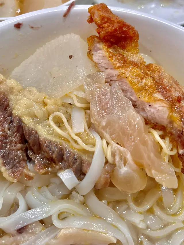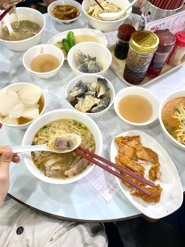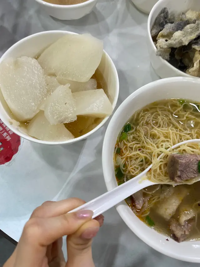 名副其實嘅遊客店,作為香港人又咁近地鐵站真係好奇想試一試,首先一個人等咗大概10分鐘,等候嘅時間已經諗好咗食咩?場內兩個阿姐打全場,嗌咗個坑腩河加淨蘿蔔(有渣的)🤣確實湯頭係幾清甜,河粉係有河粉幾滑口牛腩亦都算新鮮不錯既質素但主要原因唔再推嘅,係呢個價錢呢個環境真係唔需要考慮,加上大部份九成嘅客人都係講普通話,見到店員態度都幾唔好,尤其是一個6,70歲嘅阿婆👵🏻Anyway排隊食唔會,揀佢性價比亦都冇佢份,所以真係可以唔需要排隊食