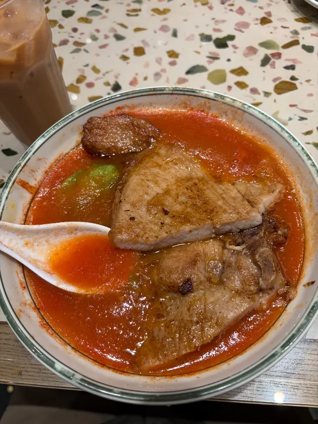 環境比舊舖大好多,但都要排隊,好彩唔算排得耐15分鐘有得入座,基本上你都預咗要同其他人搭枱必叫菠蘿油,菠蘿包真係好出色,勁脆,個曲奇面做得非常好,包夠軟熟,夾埋牛油啱啱好,但我覺得加$8牛油有啲貴,但你唔加嘅話又真係味道差多。(9/10)杯奶茶非常好飲,茶味夠濃,合格以上出品(8/10)另外叫做豬扒蕃茄麵,價錢就真係偏貴$64塊豬扒好食,好入味,但個蕃茄湯底比起以前差咗好多,我覺得以前舊舖嗰時嘅湯底好食好多,呢個下次唔會再叫埋單八十幾蚊,整體偏貴,但我覺得菠蘿包同奶茶非常出色,會再嚟。…查看更多