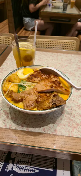 这次叫了鸡翼喇沙汤米粉和沙嗲牛肉米粉,套餐有附上热饮。🍜鸡翼喇沙汤米粉🌟🌟🌟🌟🌟呢𠮶喇沙汤超级浓郁,配上秘制卤水鸡翼,超级加分!卤水鸡翼非常入味,3只真的不够吃。配料有豆卜同烚蛋,豆卜吸满汤汁,很好吃😋!🍜沙嗲牛肉米粉🌟🌟🌟🌟沙嗲味很足,软腍的鲜牛肉配上洋葱很好吃。要注意如果选出前一丁要加钱,米粉同米线就不用。装修完环境比以前舒服好多,食物味道都keep到水准。🍋柠檬利宾纳居然只是加冻饮钱,不是特饮价,很划算。下次想试包类,🥪鲜油奶多好大块牛油,好像很好吃的样子。