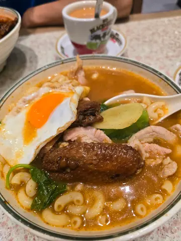 🇭🇰🍜🥢观塘排队粉面店观塘嘅呢间华嫂夜晚唔开门,每一日都只系做到5pm, 我星期六上昼11:30嚟到门口已经有人排紧队,有好多内地游客,但系都有本地人,唔算好多人排15分钟左右就有得入。单人嘅话如果坐二人枱都要搭枱。✨qr code落单✅猪扒槟城喇沙汤 -$63猪扒份量好多!有4大片,舖满了成个碗面,吾算薄而且吾会好韧。我点了米粉,也可以选米线/通粉,出前一丁、乌冬果d要+$3, 转菜底嘅话要加$5。个喇沙汤都几浓味,唔会好辣,有少少椰香味,都几正。而且配料都几多,有芽菜、豆卜、半只烚蛋、芫荽、生菜,米粉我叫咗扣抵,但系份量都仲好多。下次试吓其他汤底。✅热奶茶呢个面餐本身跟一杯热饮,冻饮要加$3。我叫咗杯奶茶,正正常常。…查看更多
