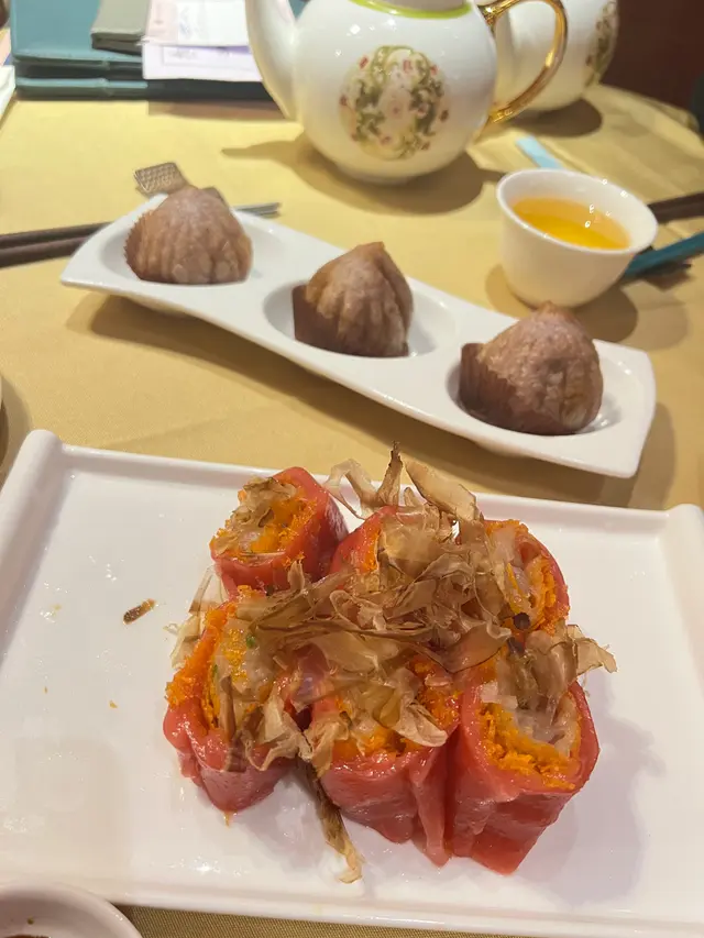 值得去飲茶的地方 osslamlam等级32025-08-04874 浏览 关注 這是一頓精緻的華式宴席,展現了中華料理的豐富風味。主菜是一碗蒸飯搭配鳳爪和辣椒,味道看起來濃郁而誘人,飯粒晶瑩剔透,與肉類的鮮嫩相得益彰。旁邊的蒸籠內有各式點心,包括粉嫩的燒賣和別致的蒸餃,色澤誘人,質感柔軟,令人垂涎。桌上還有清爽的炒菜和一壺熱茶,增添了整體的和諧感。整體呈現出傳統與精緻兼具的特色,適合與家人朋友共享,享受溫馨的用餐時光。…查看更多以上食记乃用户个人意见 , 并不代表OpenRice之观点。赞好分享值得去飲茶的地方 華宴食府 https://s.openrice.com/QrLT0gzokW0检举 张贴 评分--味道5环境5服务5卫生--抵食推介美食黑松露燒賣蝦餃鳳爪排骨飯用餐途径堂食