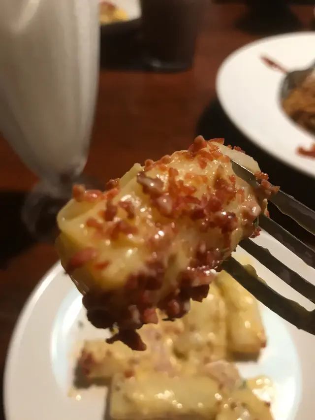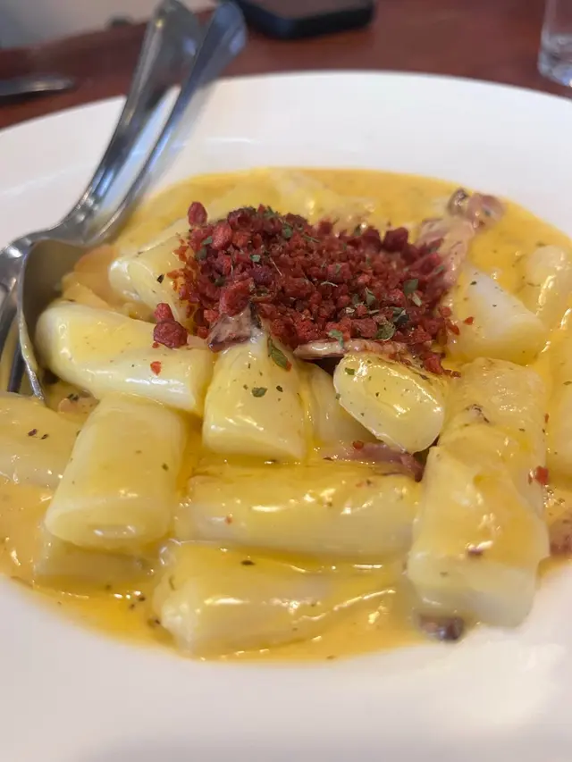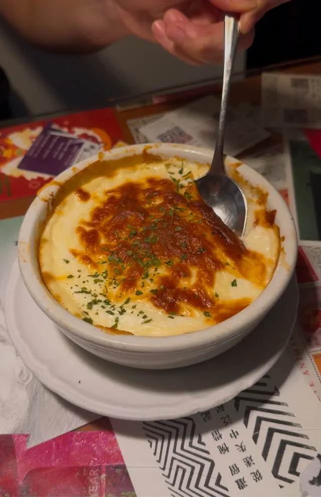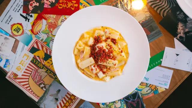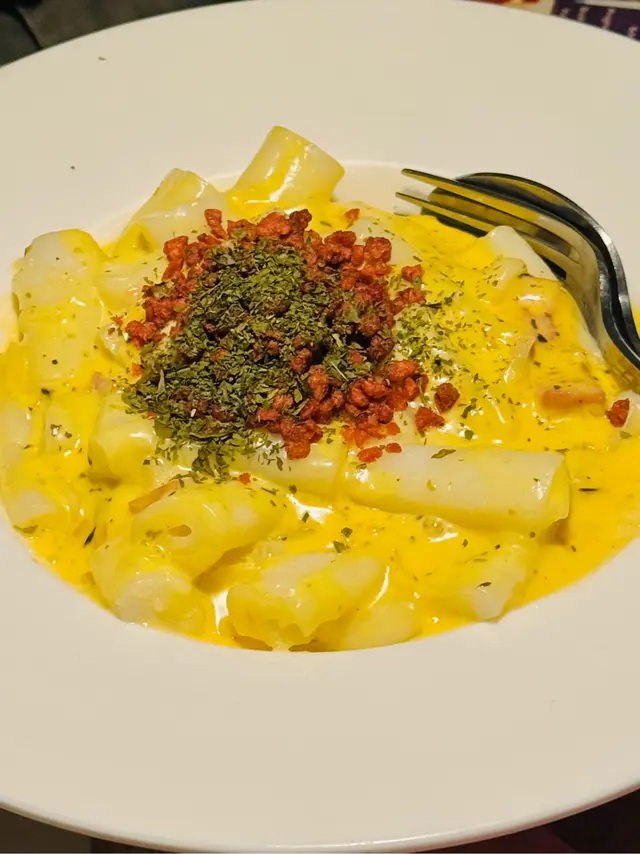 Our kindest prof treated us a loving dinner at this lovely place. With very beautiful interiors, movie and vinyl posters, an enormously eye-catchy IFC fish tank, and old-style Hong Kong booth seats, every corner is photograph worthy. We had a wonderful time, got wings; salads; pastas; rice rolls; deep fried tidbits to share. MVP of the night goes to the carbonara rice rolls- they tasted amazingly delicious, topped with crispy golden bacon bits, and fully drenched in a cheesy creamy carbonara sauce. It was my favourite. …查看更多