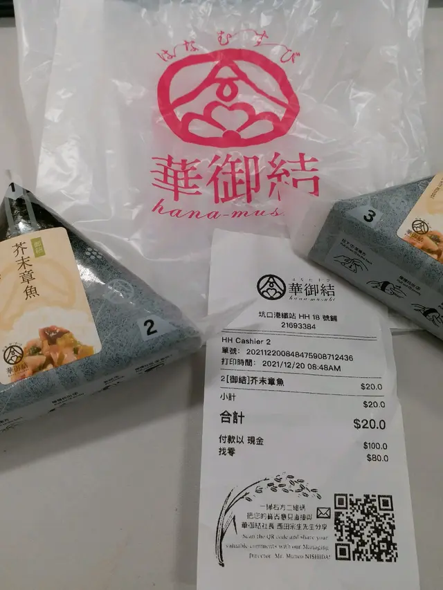 點心好選擇 肥髀媽等级42018-07-18226 浏览 关注 接肥髀去將軍澳做面,去到坑口地鐵站,地鐵站內有點店舖,肥髀見到呢間飯糰店🍙又話想食(發育階段無計)粉紅色招牌搶眼,店面不大,層架放咗即食飯糰,每款飯糰牌上都有寫清楚卡路里,攞個籃揀好比錢,兩個女店員有禮,我話即食唔使袋,佢比我之後我在櫃檯攞埋紙巾,出店後在站內打開飯糰,芥末章魚($16)包裝容易打開,紫菜脆卜卜,珍珠米飯鬆軟,入面章魚碎多,幾彈牙嫩口,加上青菜碎爽脆,醬汁微鹹,芥末味唔強,如果攻鼻少少會更正!流心濃香蛋黃($16)肥髀食店員斯文有禮當點心食是不錯嘅選擇…查看更多+ 3以上食记乃用户个人意见 , 并不代表OpenRice之观点。赞好分享點心好選擇 華御結 (港鐵坑口站) https://s.openrice.com/QrLT0VqGl00检举 张贴 评分4味道3环境4服务5卫生4抵食推介美食紫菜卜卜脆章魚粒蛋黃餡用餐日期2018-07-17用餐途径外卖自取人均消费$16 (下午茶)