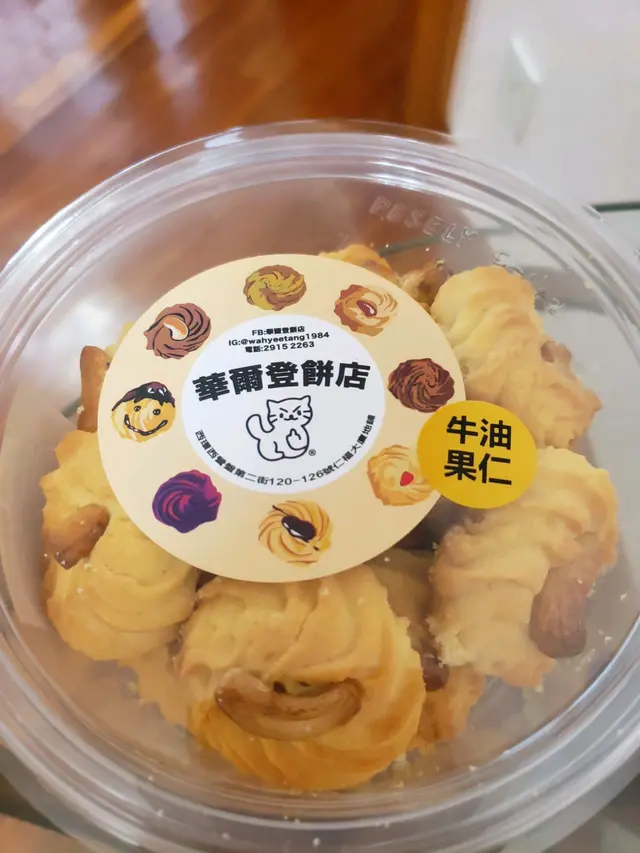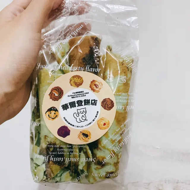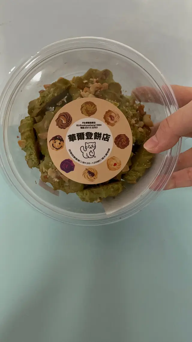 開心果蛋捲是這次購買中的意外驚喜。蛋捲外層酥脆,內裡輕薄,帶有濃郁的開心果香氣,入口後 nuts 的香味在口中久久不散。與坊間常見的奶油蛋捲不同,這款蛋捲甜度較低,開心果的天然風味被充分突出,口感清新而不膩。每一條蛋捲都手工捲製,形態略有不同,增添了親切的手作感。作為伴手禮或自用都非常討喜。華爾登的點心不僅味道穩定,更帶有濃濃的懷舊情懷,讓人感受到老香港餅店的溫暖。店內環境簡樸,店員態度親切,購買過程輕鬆愉快。包裝方面,曲奇和蛋捲均用密封小包裝,方便保存,送禮也顯得精緻。