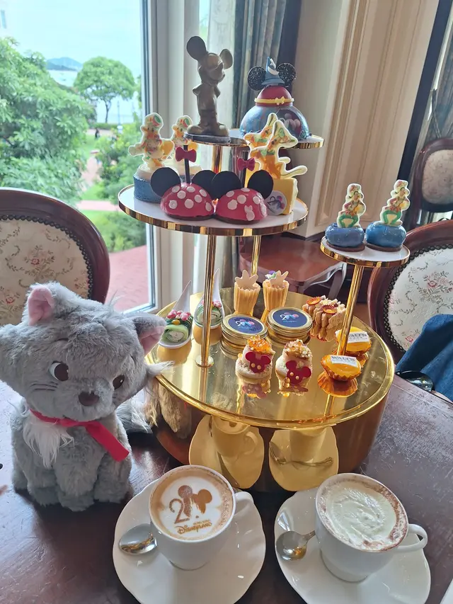 This year is Hong Kong Disneyland's 20th Anniversary and they have so many celebration menus/set meals. I decided to try this afternoon tea set first.Their print design for the latte was cute.The tea set came and it was totally adorable, showing off their everything that's Mickey related.For this tea set, I preferred their savory items. The caviar was not too salty and the scallop was perfectly seared (given this is just a tea set). The cucumber roll was really refreshing with the crab.The desserts were definitely the cutest though I think it could be less sweet. Their sweetness was defiinitely no where near to Disney snacks at Disneyland and their flavors area already fruit based. However, despite I ate the desserts and savory items alternatively, the sweetness by the end was still a bit much. As individual desserts, they would have tasted just right but collectively till the end it would be too sugary., I think they should try to reduce the sugar and enhance the tarty/fruity flavors of the desserts to make it more refreshing. However, given the great flavors of the savory and its cuteness, I will still give this a great review.…查看更多