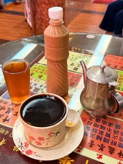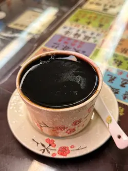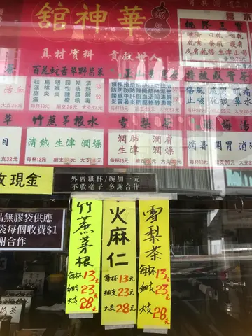 After my sunny stroll along the Aldrich Bay, I felt too hot to handle myself (if you know, I'm a heaty person) so I grabbed the most HK-style remedy to cure me: HERBAL TEA! If you haven't drunk any, come here, because this shop is a neighbourhood gem in Eastern district. Right next to the tramway, old vintage wooden seatings, glass tanks with giant glittery scaled fish, together at the storefront: jugs and glasses of freshly poured herbal teas. My pick: A blend of antioxidizing and revitalising bamboo canes, horseshoe baimao roots. Tasted moderately sweet, not earthy, easy to drink, and was just right for anyone who sweated a lot. For my family: Hemp seed and almond drink to help them with their bowels and digestion, this one tasted smooth, roasty and almost like a dessert soup. Yes, this shop sells dessert too, my takeout was a bowl of peach gum trio, there were snow fungus, peach resin in it, the flavour reminds me of sweet dates and it definitely is your collagen booster. …查看更多