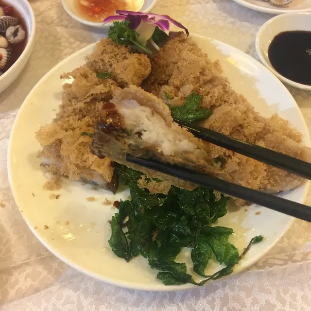 今日同屋企人慶祝生日 就去咗華宛潮州餐廳度食正宗潮州打冷😋我哋叫咗一份炸蠔餅,蝦棗拼芋卷,蔥花煎豆腐,馬友蒸魚,糖醋麵同埋蠔仔粥 質素好好👍🏻炸蠔餅炸得好鬆脆 而且仲係用薯粉炸 蠔仔嘅味道亦都好突出 而且蠔嘅數量亦都好足 值得推介😋😋佢嘅蝦棗拼芋卷亦都好好食 芋卷嘅芋頭唔係好粉 可以食到粒粒嘅芋頭 蝦棗嘅蝦味亦都好突出 配埋酸辣醬味道更佳佢嘅蔥花煎豆腐好有鑊氣 亦都唔會煎得太鹹 如果唔想食咁多炸嘢可以試吓呢一個佢嘅馬友蒸魚蒸得好滑 肉質亦都好軟熟 配埋佢嘅梅子汁 好有屋企嘅味道 值得一試佢嘅蠔仔粥都好推介 蠔嘅份量好多 幾乎每一羹都會有兩粒蠔糖醋麵都整得好好食 配埋糖同埋醋味道更一流 外脆內軟整體來講呢間作為打冷真心推介 服務亦都好好 份量十足 不過價錢可能就會貴少少 但佢嘅質素亦都值呢一個價查看更多