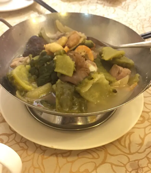 又同幾個uncle auntie 食飯是晚在尖沙嘴食晚飯西餐多數都唔係首選 比幾個選擇他們 最後揀了大都未試過的華苑我和其中一位姐姐例外未試過又未睇過open rice 班uncle auntie 意見絕無bias !預先講左 唔係裝修高級的餐廳黎嫁!一入門口 oh~ 我鍾意,夠氣氛,這些格局先有好野食!等 都係他們講的點菜 一人揀一個 共5個菜uncle A 話好耐無食苦瓜 點了苦瓜排骨煲他們話好食 但我小朋友唔識欣賞中國苦瓜感覺夠晒苦和有d鹹酸菜味uncle B 見到廚房位出門有個 海產show desk 見到 瀨尿蝦好大隻 叫左椒鹽蝦2隻 時價100幾一隻 我敏感 試了一小塊 ok 肉爽 殼都好脆他們連d炸蒜都唔放過凍烏頭 時價 不是好油 肉好鬆軟蠔仔粥走地雞都好鮮味 d sauce幾特別 用幾種綠色香菜搞埋 (店員透露的秘方)最後食埋綠豆爽 不太甜 大家非常滿意最重要係 d 伙計熱情 和d uncle 可以吹下水tump得他們好開心查看更多