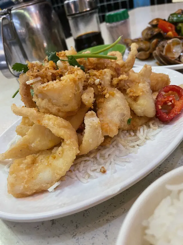 ✨椒鹽炸鮮魷(另有醋)之前嚟食過,仍然覺得佢好出色‼️份量足夠,而每一舊都大大舊。魷魚質地實淨+有咬感。炸衣酥脆而薄身,有淡淡魷魚味 + 好香椒鹽味,好惹味😚🤤原來配醋食都唔錯,鹹同酸之間嘅味道中和咗,唔係淨係鹹味only🦑.✨海鮮炒飯海鮮有:鮮魷、炸魚柳、蝦仁,亦都有蛋同生菜👈🏻用料上相比茶記 係足料啲😂🤣炒飯方面炒得粒粒分明,唔算太油👌🏻不過下一次再嚟,應該唔會再選佢(試其他!).✨blue girl beer…查看更多