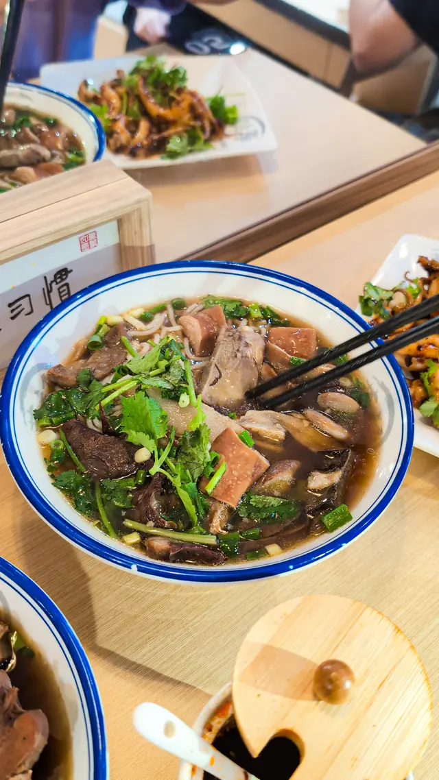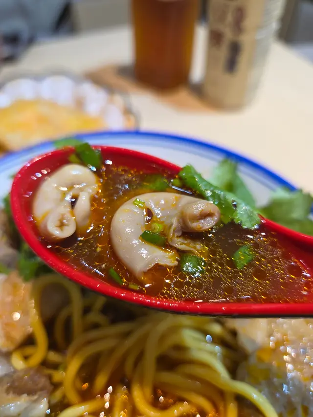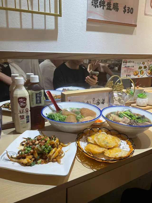 呢間車仔麵係唔少明星既愛店❗️終於有機會去試下,佢地好多唔同滷水既餸,中意食牛雜🐮/豬雜既朋友,就唔可以錯過🍜三餸車仔麵 $53(牛肉餅、豬腩肉、生腸、油麵)欣賞佢地啲餸都好特色,三個餸每樣份量都好多吓💯😎,湯底叫全部汁(顧名思意咩都有、腩汁、沙嗲汁、咖喱汁、辣汁🌶️等等🫶🏻),湯底都好惹味,下次可以試中辣😍配料方面,牛肉餅真爆汁💦,豬腩肉🐷肥瘦均勻,生腸夠肥夠入味😋,可以話係大件夾好食之選🐮牛雜河 $48黎到梗係試下佢地既滷水牛雜,揀左滷水加腩汁湯底🍴牛雜好入味,有牛肚、牛肺、牛膀、牛大腸,洗得乾淨無怪味同苦味👍🏻,足料份量多,落埋腩汁更加提鮮,高質牛雜河👍🏻🉐食辣既朋友都可以加佢地個招牌辣油🦐太陽餅(蝦餅5件) $45呢個蝦餅好特別,上下有塊皮夾住蝦膠同有原隻鮮蝦😍出面脆口、裏面彈牙有蝦味,幾好食🤤🦑新鮮魷魚鬚 $52魷魚份量都幾多,用秘製辣醬撈埋,香辣惹味,仲有花生好香口,魷魚好爽口新鮮👍overall:各樣嘢食都好出色,值得大家一試👍餐廳都幾大,而且座位都好闊落,味道同款式都食得出餐廳對食材幾有要求,大家嗎喺尖沙咀想搵車仔麵食,不妨考慮一下…查看更多