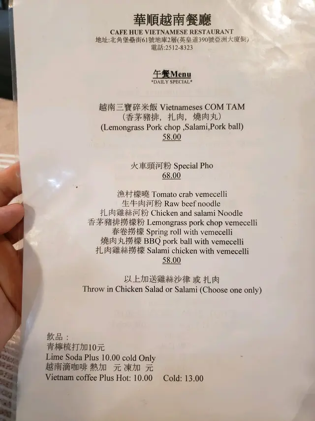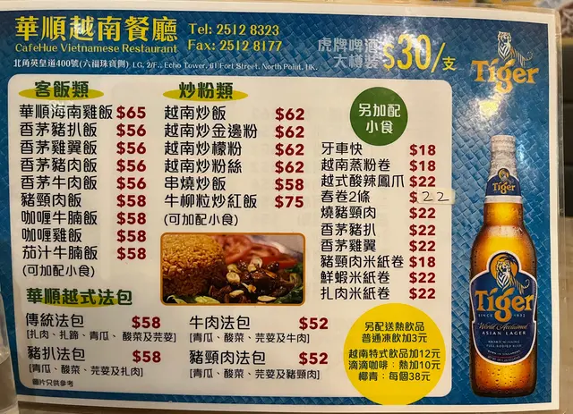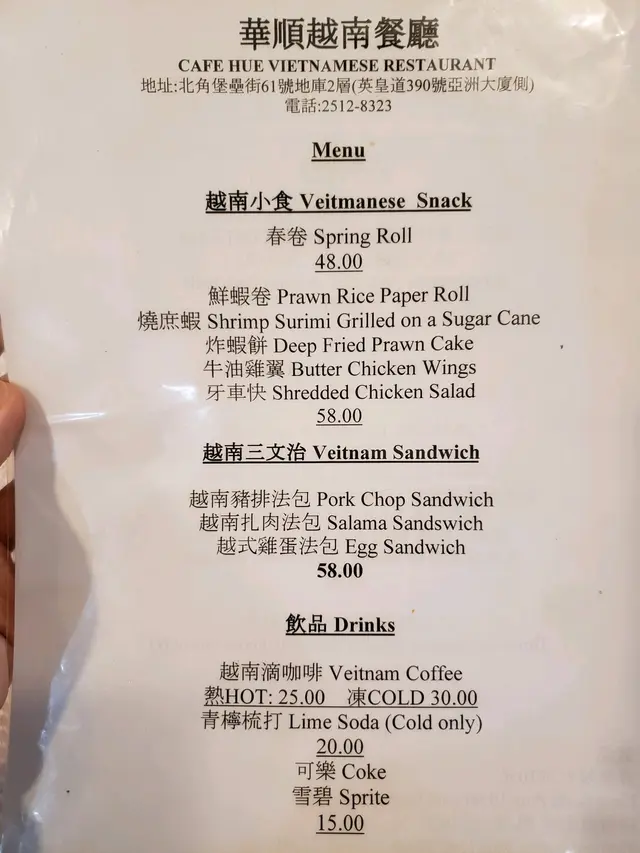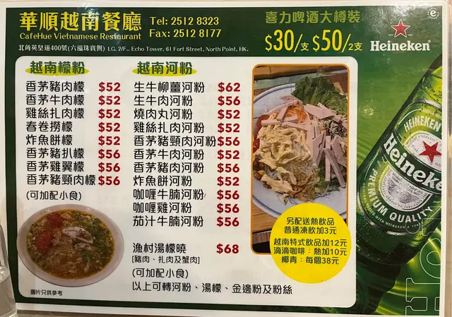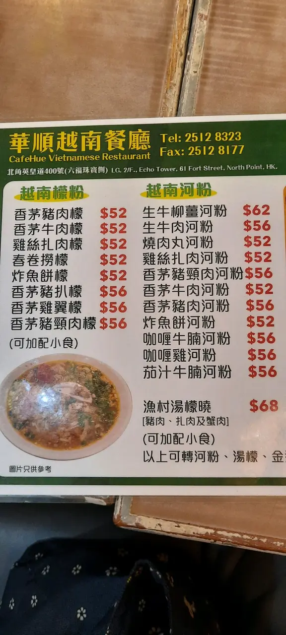 華順越南餐廳 (北角) 网址: https://s.openrice.com/QrLS0WIW000 地址: 香港北角堡壘街61號寶峰閣底層地下2樓 电话: +852 25128323