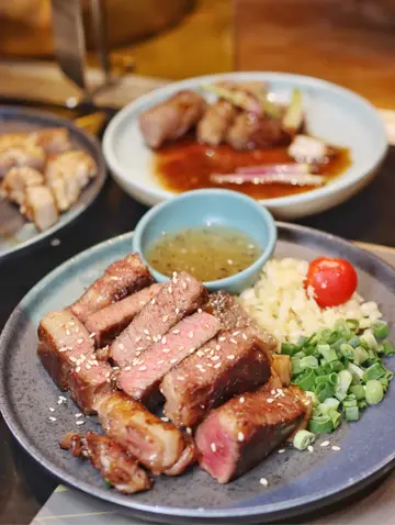 当天点了2人(丰盛)套餐$498前菜(冷盘);(2客)。烧生蚝2只; 盐烧鲭鱼; 板烧牛油半壳大支(2只);主菜: 纽西兰牛柳; 盐酱香葱薄牛舌; 葱花蟹子牛肉炒饭(2人份)饮品:可乐2罐在追加了: 比目鱼扒(1客); 封门牛肉(1客)总数:$798.00* 价钱都算合理,本人不是嫌他收得贵, 只是想讲,牛柳与风门牛肉竟然可煎得那么柴,生蚝及带子干到像生晒海味,牛吞一般(都淋过牛柳),炒饭的牛肉很柴,味道不太好, 本人觉得全日最值得赞赏的是炒菜和伴牛柳的洋葱。* 本人觉得他们都不是专业厨师,只是一位识揸著镬铲的工人, 把好好的食材煮成一团糟, 本人一定不会作回头客, 我想,随便放一位家厨,厨艺都会比他优胜。…查看更多