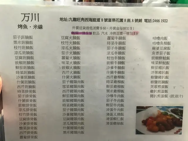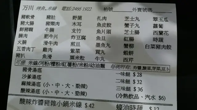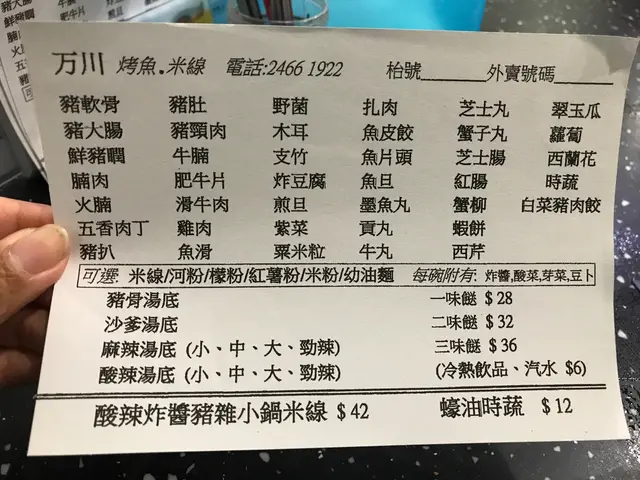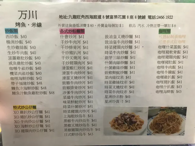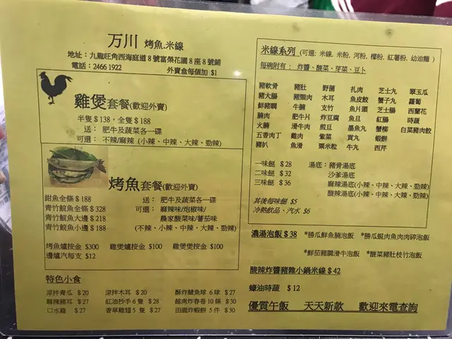 萬川 烤魚米線 (大角咀) 网址: https://s.openrice.com/QrLS01Ru200 地址: 香港大角咀海庭道8號富榮花園第8座地下08號舖