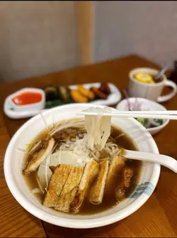 「泰式生菜包」份量相当大份,不过香味就差D,同埋无咩辣味,所以食落有少少单调!「炭烧猪扒汤河粉」猪扒肉质好软嫩,仲食到炭烧香❤️应该系即叫即炭烧,高质‼️牛骨汤底做base,河粉好索汤~~「马拉盏炒饭配鸡肉串」呢个炒饭非常惹味,配合埋炸干葱,令香味更加提升