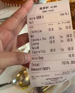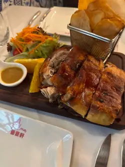 同几个friend再去澳门觅食,今次专程试咗氹仔旧城区呢间以蓝白外墙闻名嘅「葡景轩」。餐厅环境几舒服,服务几周到,我哋4个人叫咗几个菜试下,食完都几满意。🔹 白酒炒蚬白酒炒蚬卖相好吸引,粒粒都开哂口,蚬肉没离壳而且饱满,食落无沙,本身已经食得出牛油同酒味,如果想更加开胃,建议加埋柠檬汁,味道就更丰富😋🔹 咖喱软壳蟹咖哩软壳蟹份量充足,有3只软壳蟹配上蔬菜同白饭一豌,够哂我地几个人分黎食,软壳蟹炸到脆口,咬开后里面都有蟹肉,唔会得一层炸皮。咖哩本身带D香辣,加落去软壳蟹或者白饭都好好味🤤🔹 葡式烤乳猪乳猪皮烧得超脆,但肉质依然保持到嫩滑多汁,点埋酱汁食就更加有风味。最欣赏系调味恰到好处,唔会太咸,食到猪肉本身嘅鲜味 😍整体而言,呢度嘅食物质素几好,环境同服务都唔错。如果系周末或者假期嚟,建议提早订位,因为真系几爆场。今次试咗几款菜式都满意,下次会想试埋佢哋嘅海鲜饭同其他招牌菜。…查看更多