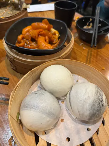 有时要做孤独的美食家,快快食完开工,想食点心,呢度有点心拼盆,啱晒!马蹄糕系惊喜,烟勒得来又爽脆,可能用蒸,无左煎果阵油味,成块糕清新左好多!跟住有D 贪心,想食冻甜品,芝麻糕好吸引,浓浓的芝麻香,软滑,都饱左,仲一件接一件,食晒!之后又去帮衬,唔想次次点心拼盘,想食咩就叫咩!云石芝麻包,外型好靓!入面芝麻馅流架!有花生做配角令味道有D 层次,我几中意!虾饺系足料的,同酒楼差唔多。煎肠粉煎得好好,外皮脆的,但又唔会干同油,很平均!最后送左碗紫米露,里面有粒粒芋头,唔错!叉完电,开工!