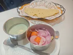 哩间会提供湿毛巾抹手,好特别,因为对印度的印象一般都唔太卫生前菜已经好丰富,有块脆饼,加一堆洋葱粒,好开胃。个鸡汤好好饮,偏油,感觉有加香料。叫左plain lassi, 走糖,好好饮,另外有jal jera, 哩杯有好多香料,有酸又甜又辣,岩重口味人士。叫左咖喱羊肉,芝士naan, 个naan唔点野都好好食,咸香充足,咖喱可拣mild辣,羊肉唔错,有一旧较难咬。个男中年waiter冇乜表情,不过服务正常