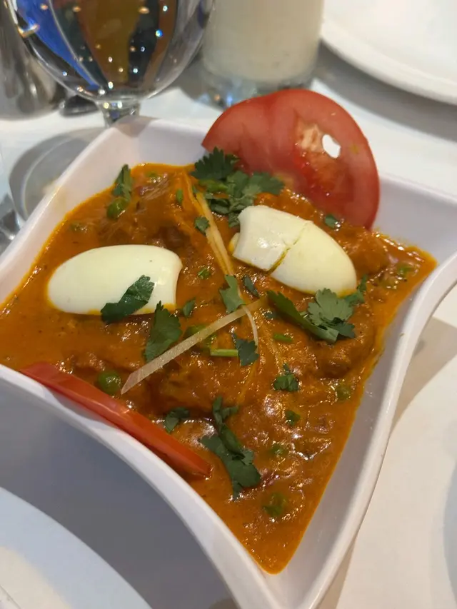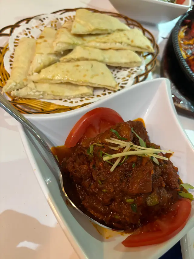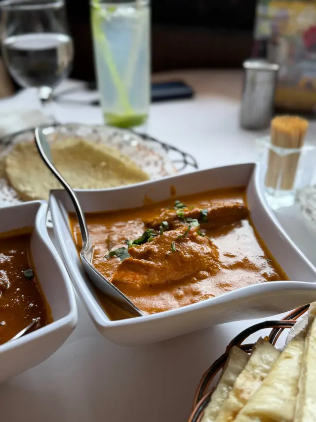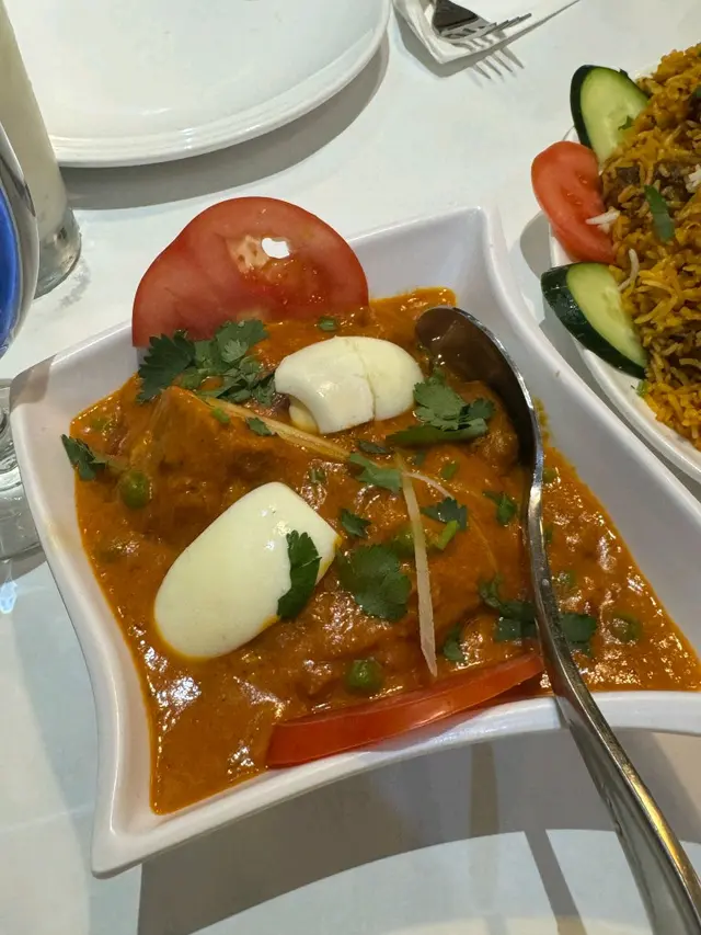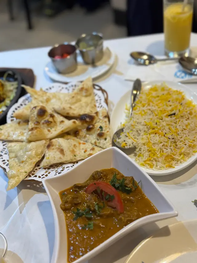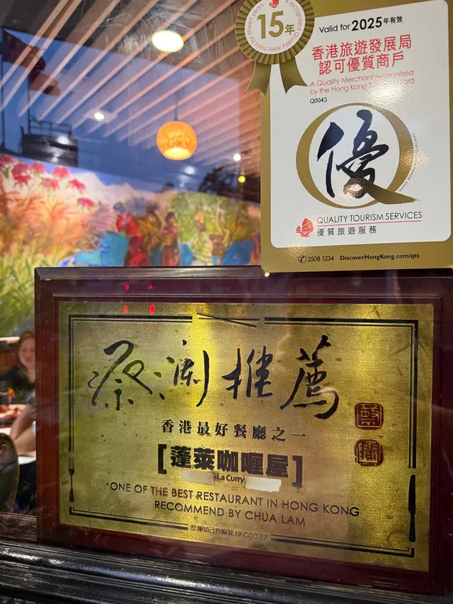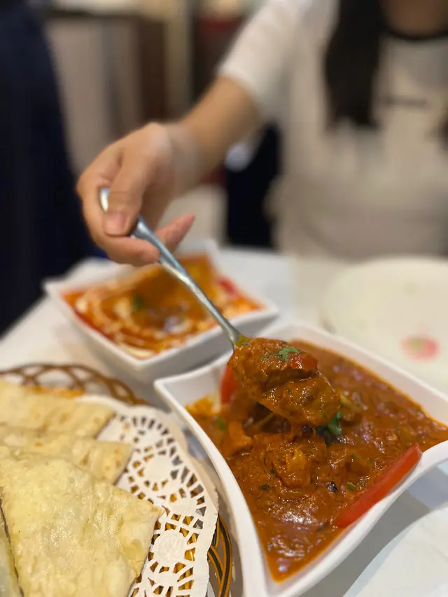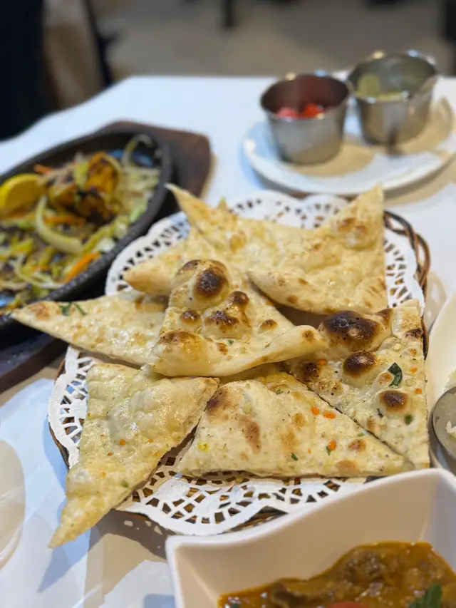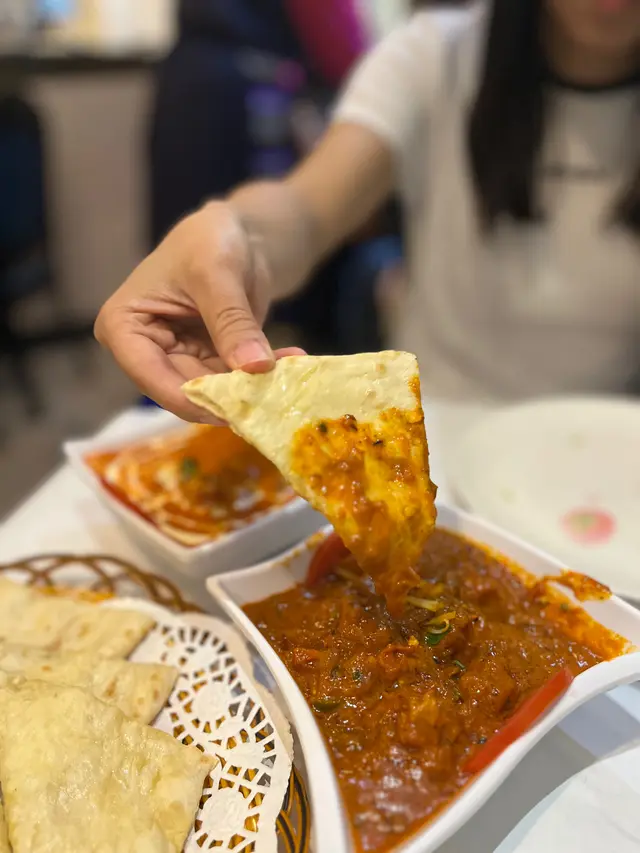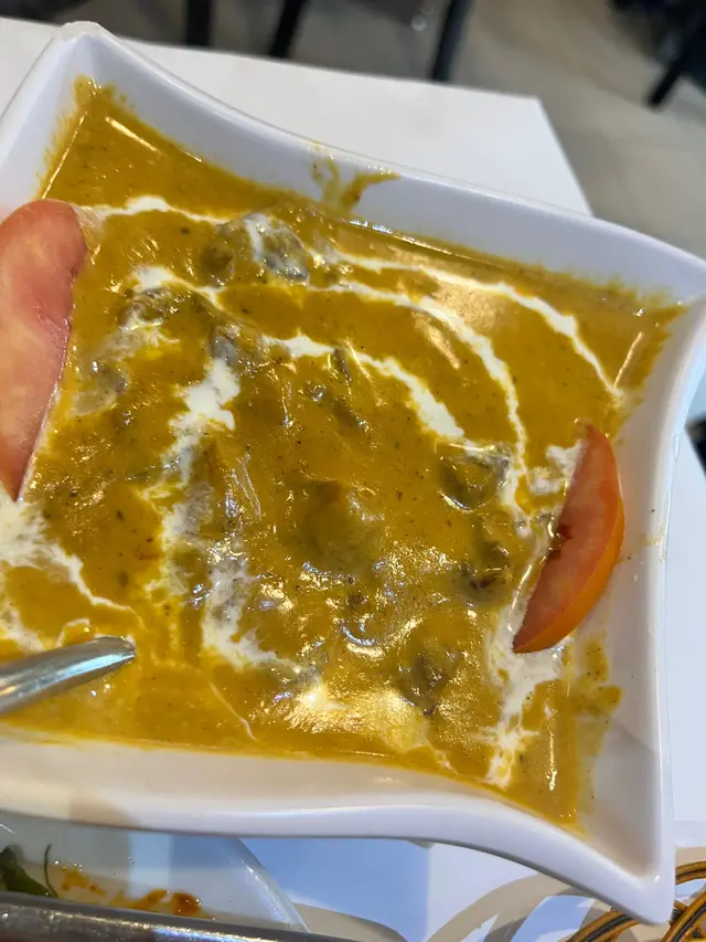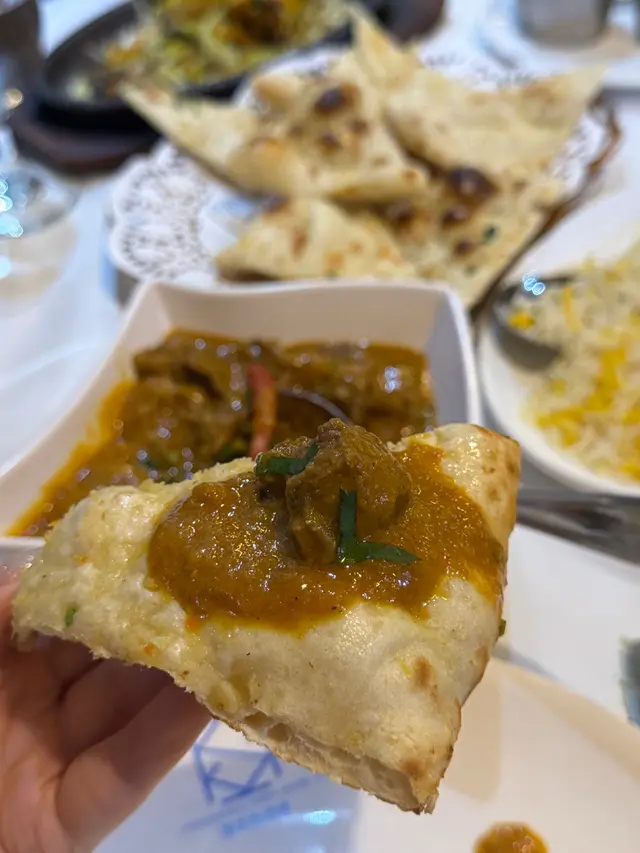 經Openrice訂座,第一次嚟。一道雕花木門好有特色,店內佈置亦非常優雅。周末,餐廳仍然提供午市套餐,最平$70:咖喱雞/羊/豬/雜菜,跟白飯/烤餅,另有前菜、湯同飲品,豐富、抵食。白飯、烤餅同飲品可+$10升級,靈活度高,可按個人口味自定組合。脆餅、薄荷醬、醃洋蔥:入座後,侍應即刻送上;洋蔥味唔嗆,仲有甘筍粒,開胃;薄荷醬的味道單薄啲湯:如點雜菜類,餐廳會自動跟蔬菜湯,揀肉類主食就配雞湯;兩款湯都係清湯,有啲似茶餐廳落咗味精或調味出嚟的湯(或者係高湯?);雞湯有雞肉粒,蔬菜湯就有唔少蘑菇片沉底咖喱雜菜:$70;備註辣度溫和,入口少辣;咖喱醬幾大碟,但以醬汁為主,蔬菜量(西蘭花、椰菜花、豆、菇)唔多;醬汁濃稠,好味烤雞伴薯仔烤餅:$108;狗狗爸爸的主食;鐵板上,上檯時冒曬煙;狗狗爸爸讚雞肉嫩,可惜醃料唔啱佢口味,佢亦偏好有汁,而家就咁配烤餅食比較乾芝士烤餅:跟餐+$10可將烤餅升級為蒜蓉/芝士烤餅;落單時問侍應邊款好,佢秒覆「芝士」,於是揀咗呢款;芝士味唔明顯,呢款烤餅係甜味,單食還好,配咖喱時,口味唔夾,格格不入芒果乳酪:跟餐+$10可將飲品升級為特飲;飲品唔大杯;點咗少甜,味道調校非常好,質地濃稠,撇除唔係好凍,無可挑剔餐廳環境一流,食物質素唔錯,價格實惠,所以,周末午市人流不絕,好旺場。餐廳有啲細節位做得好好,例如:坐低由經理挾上濕巾俾客人抹手、每張檯放咗支裝蒸餾水、餐檯面鋪大餐紙,食客離開即刻換上另一張。樓面有個細細粒的女侍應超級nice,禮貌周到,聽到有食客話想要水,佢即時為自己疏忽而道歉(入座後,侍應會喺你面前開咗檯面的支裝水,倒入杯度)。成餐飯,女侍應都好留意我哋杯水,一唔夠就主動斟,每當我哋清碟後就馬上過嚟收拾。餐廳無論服務定細節都俾人高級的感覺,好有心做好件事,值得欣賞,難怪咁多回頭客~~…查看更多