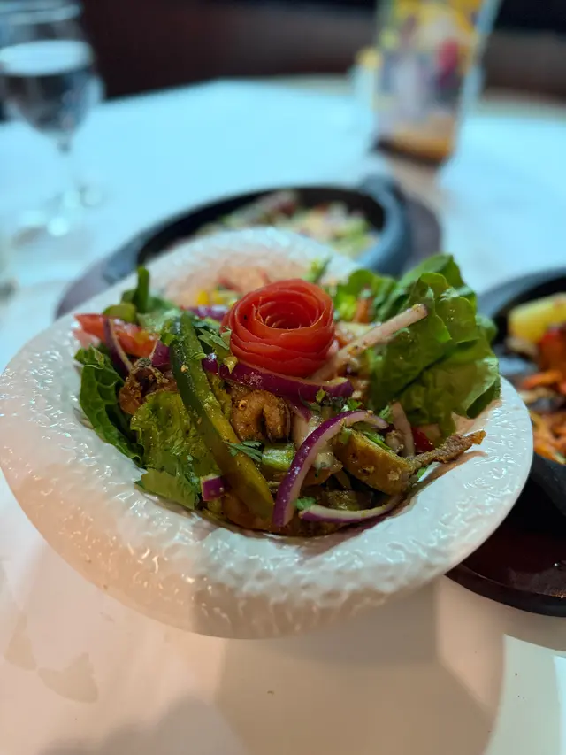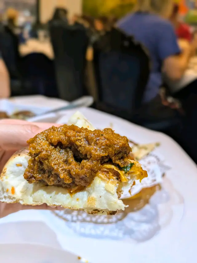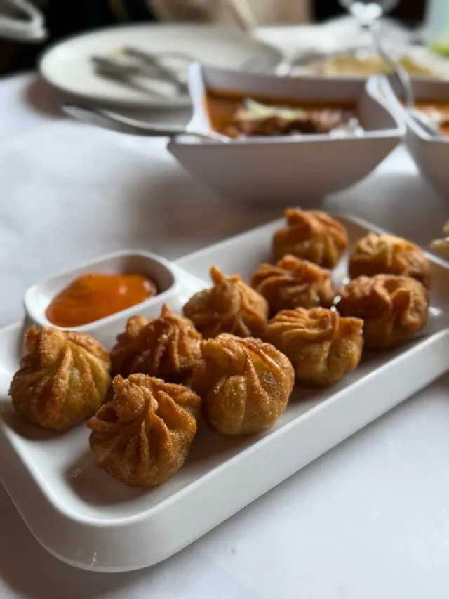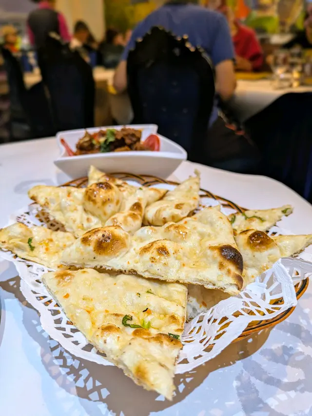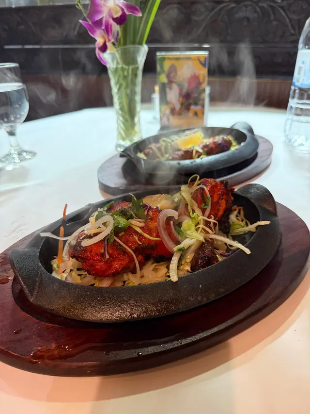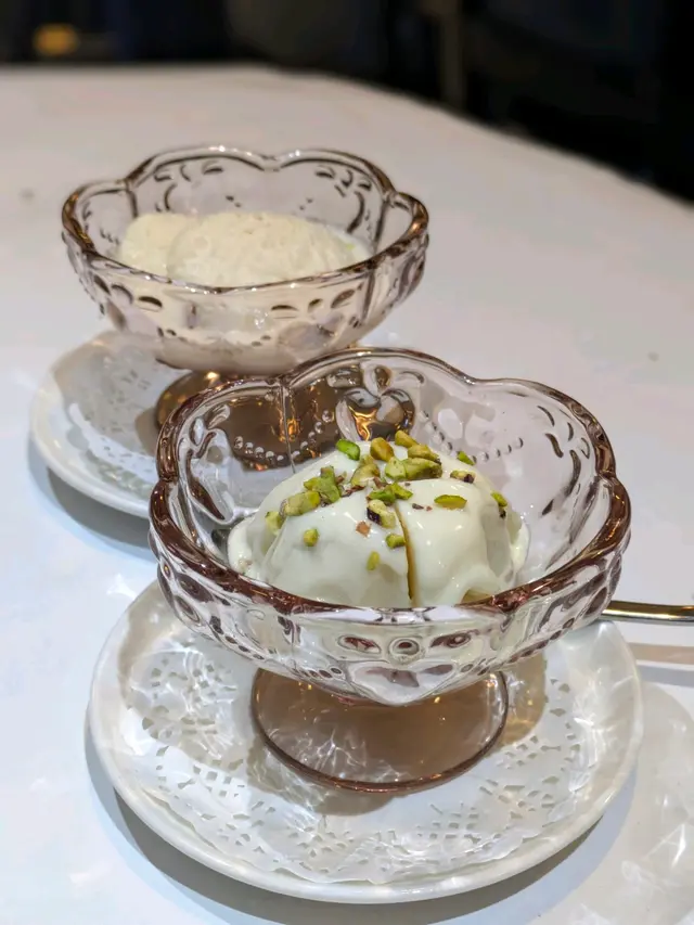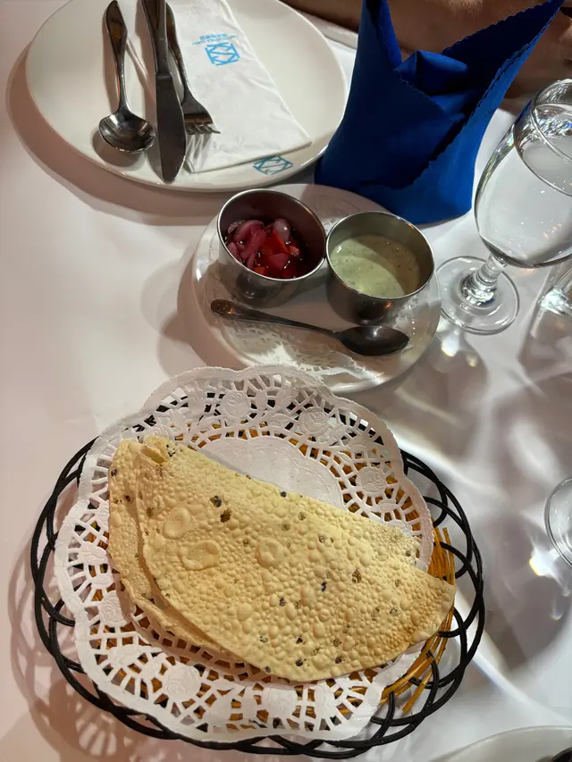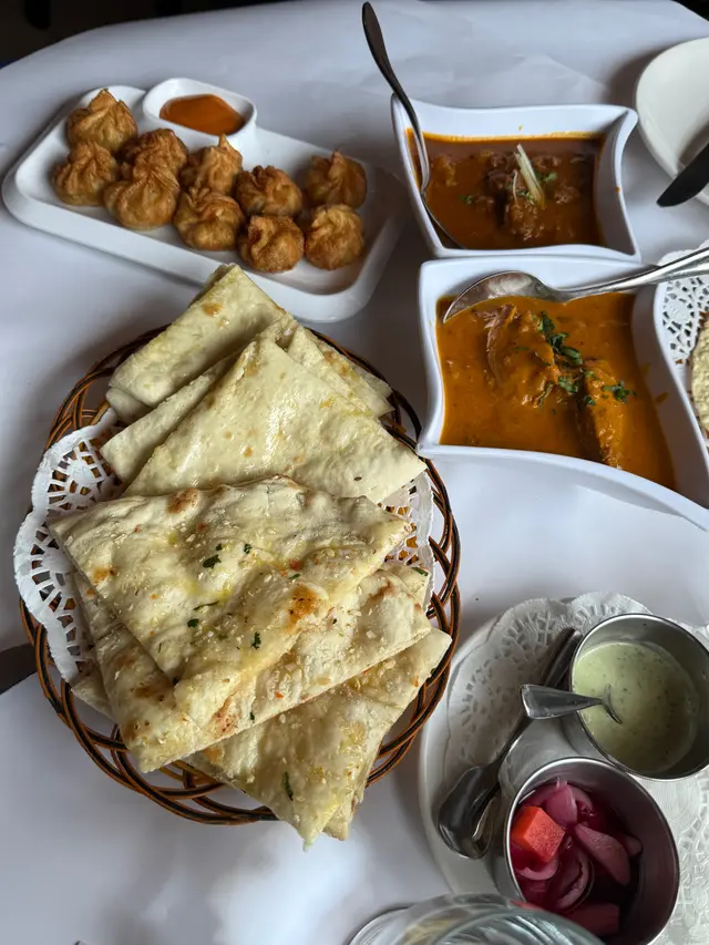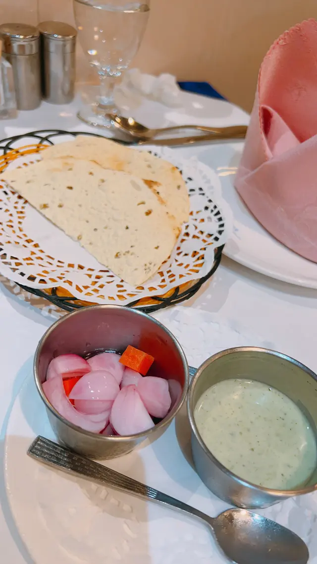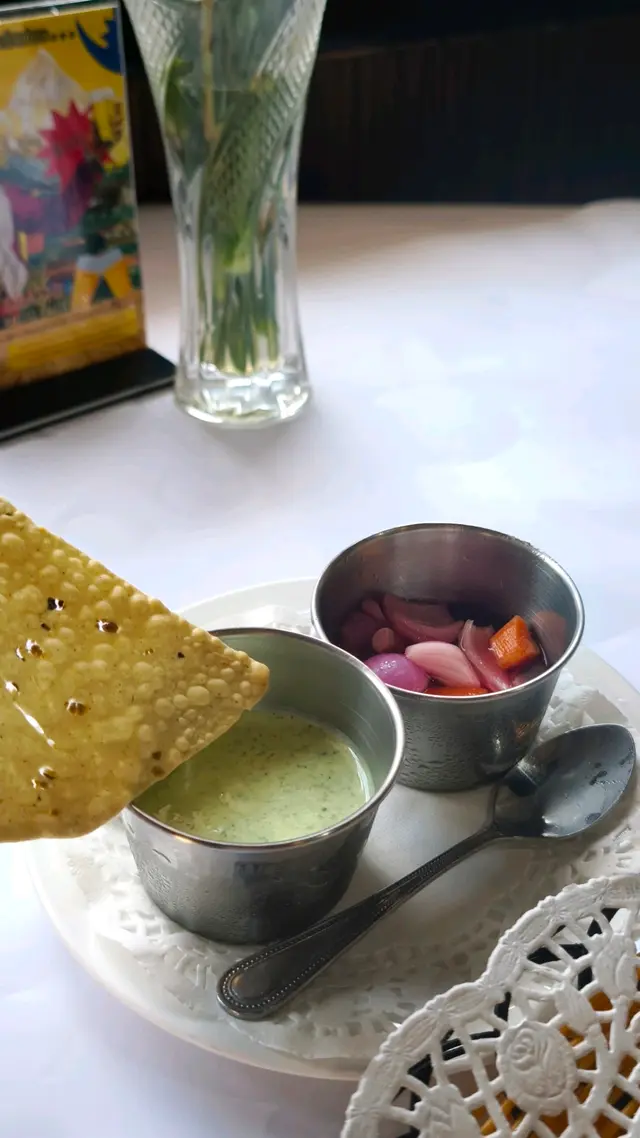 經Openrice訂座,第一次嚟。一道雕花木門好有特色,店內佈置亦非常優雅。周末,餐廳仍然提供午市套餐,最平$70:咖喱雞/羊/豬/雜菜,跟白飯/烤餅,另有前菜、湯同飲品,豐富、抵食。白飯、烤餅同飲品可+$10升級,靈活度高,可按個人口味自定組合。脆餅、薄荷醬、醃洋蔥:入座後,侍應即刻送上;洋蔥味唔嗆,仲有甘筍粒,開胃;薄荷醬的味道單薄啲湯:如點雜菜類,餐廳會自動跟蔬菜湯,揀肉類主食就配雞湯;兩款湯都係清湯,有啲似茶餐廳落咗味精或調味出嚟的湯(或者係高湯?);雞湯有雞肉粒,蔬菜湯就有唔少蘑菇片沉底咖喱雜菜:$70;備註辣度溫和,入口少辣;咖喱醬幾大碟,但以醬汁為主,蔬菜量(西蘭花、椰菜花、豆、菇)唔多;醬汁濃稠,好味烤雞伴薯仔烤餅:$108;狗狗爸爸的主食;鐵板上,上檯時冒曬煙;狗狗爸爸讚雞肉嫩,可惜醃料唔啱佢口味,佢亦偏好有汁,而家就咁配烤餅食比較乾芝士烤餅:跟餐+$10可將烤餅升級為蒜蓉/芝士烤餅;落單時問侍應邊款好,佢秒覆「芝士」,於是揀咗呢款;芝士味唔明顯,呢款烤餅係甜味,單食還好,配咖喱時,口味唔夾,格格不入芒果乳酪:跟餐+$10可將飲品升級為特飲;飲品唔大杯;點咗少甜,味道調校非常好,質地濃稠,撇除唔係好凍,無可挑剔餐廳環境一流,食物質素唔錯,價格實惠,所以,周末午市人流不絕,好旺場。餐廳有啲細節位做得好好,例如:坐低由經理挾上濕巾俾客人抹手、每張檯放咗支裝蒸餾水、餐檯面鋪大餐紙,食客離開即刻換上另一張。樓面有個細細粒的女侍應超級nice,禮貌周到,聽到有食客話想要水,佢即時為自己疏忽而道歉(入座後,侍應會喺你面前開咗檯面的支裝水,倒入杯度)。成餐飯,女侍應都好留意我哋杯水,一唔夠就主動斟,每當我哋清碟後就馬上過嚟收拾。餐廳無論服務定細節都俾人高級的感覺,好有心做好件事,值得欣賞,難怪咁多回頭客~~…查看更多