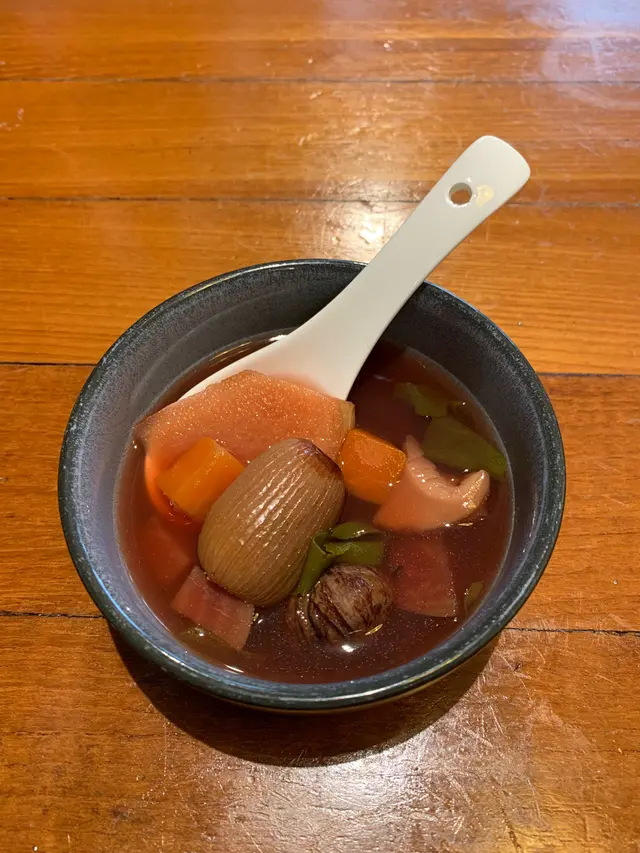 難得有me time,去完伊利沙伯館睇表演。隨機在谷歌找了附近這間素食館。店內環境佈置十分有特別風格,蜜麻麻的飾物,但很乾淨!餐牌上有十多款套餐,還有甜品。簡簡單單叫了一份滷水素雜錦飯餐,跟了一個湯,湯不是稀的,有料,未至於老火湯,但已很好味。滷水餸有雞蛋一只,入味,還有不是普通豆腐,層層的,最鍾意這款豆腐。仲有用竹枝捲着的腐皮,扮雞髀😂有意思!蘿蔔太淋,可惜綠色菜只得一條,太少了!提店主米飯份量,不浪費食物!這也是食素的原則👍🏻,我還叫了德國黑麥汁,真是過飽了!甜品也沒有胃去試😋平凡的幸福。…查看更多
