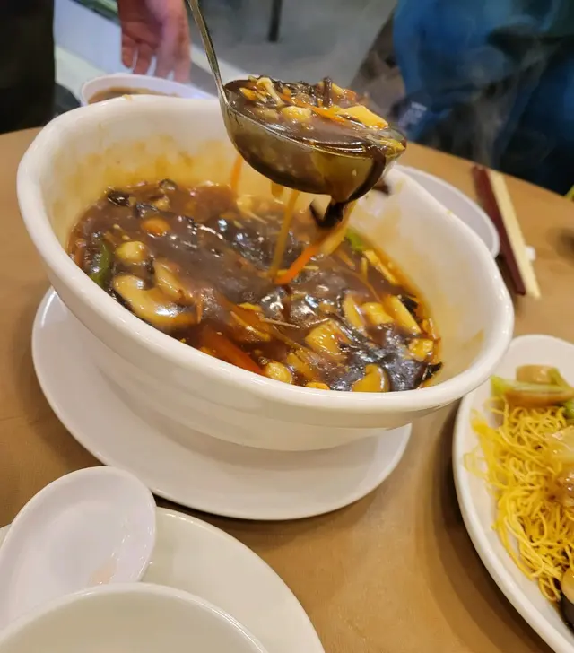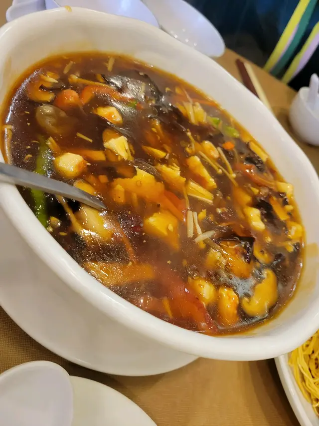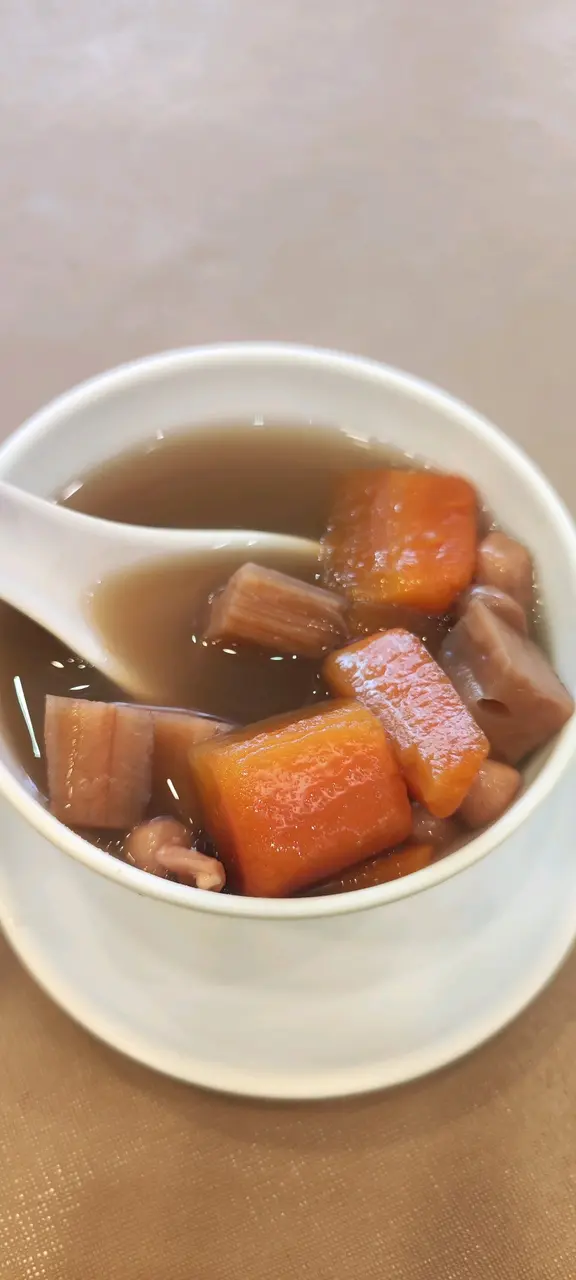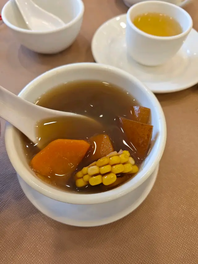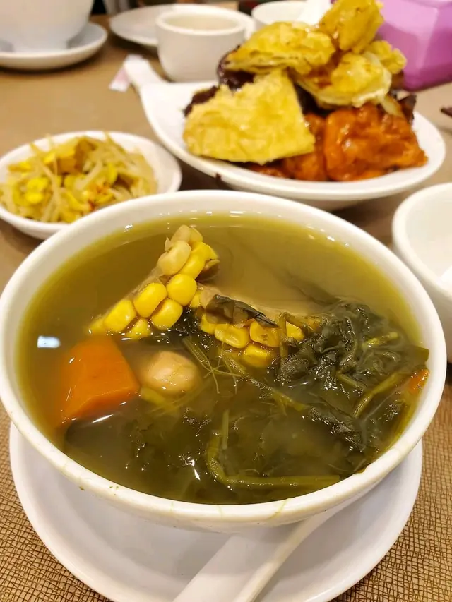 今日再過來九龍城, 又來食素, 一個人真係唔食得d乜嘢, 想食清淡d, 要左個什菜湯米粉, 開左壺鐵觀音, 店員安排左水兜比你清洗碗筷, 夠貼心👍🥰, 轉頭店員送上例湯, 今日係老黃瓜粟米🌽紅蘿蔔🥕, 煲得好濃, 好清甜, 飲落好舒服😀, 轉頭送上米粉, 好多菜, 食落健康又舒服😘, 飲啖湯先, 湯底亦好清甜👍, 米粉份量都多, 一定夠飽😄, 今日壺鐵觀音, 飲落都好香👍幾濃茶味, 但亦唔係好苦😀, 之後店員再送上渣咋, 出面好少會煲渣咋, 入面好多豆🫘, 食落唔甜, 好香椰汁味😍, 亦唔錯🫶簡簡單單的一頓午餐😘…查看更多