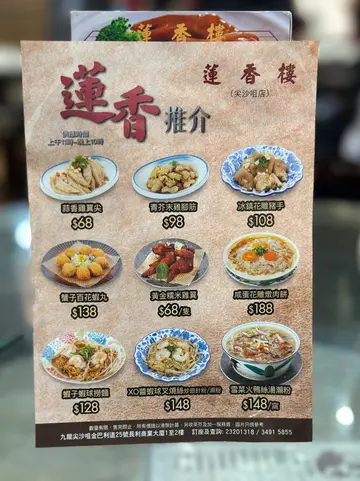 餐厅:莲香楼 (尖沙咀)地址:尖沙咀金巴利道25号长利商业大厦1楼至2楼相信作为香港人无边个唔识莲香楼,早喺1927年,第一代莲香楼已经喺中环开业,而经历三代嘅变迁,怀旧嘅茶楼独特形象依然无变,莲香楼继续将几十年前嘅传统文化传承到今时今日🥧继中环老店之后,尖沙咀分店喺今年5月正式开张,餐厅占地两层,布置依然古色古香,充满旧式茶居嘅特色,包括木制家私、怀旧点心车,仲有开放式小厨见到一笼笼点心,加上24小时营业,难怪除咗本地食客之外,仲吸引到唔少外国游客😎嘢食未到,先拎点心卡去楼下拣返两笼靓靓点心,晚市点心一律$48,拣咗一笼有4件嘅虾饺同烧卖,虾饺做到皮薄馅靓,鲜虾肉爽弹滋味;烧卖同样出色,最重要喺要趁热食先好食🔥✝️冰镇花雕猪手 $108一份大概有8-10旧猪手,每只猪手都炆得好腍,猪皮做到爽口入味,阵阵花雕酒香同蒜香充满喺每一啖肉当中,喺前菜开胃嘅好选择🤤✝️咸蛋花雕炖肉饼 $188虽然我都喺第一次见咁贵嘅肉饼,但当肉饼上枱同食落口就知原来一啲都唔惹少,切开见到几乎喺出面肉饼嘅两倍厚度,加上食落唔会得个咸字,仲有3粒大咸蛋,加上满满嘅葱,捞饭食真心一流😍✝️虾子虾球捞面 $128讲到特色又点可以唔讲呢个人气主食?将弹牙嘅粗面飞水,再捞埋蚝油同其他调味料,加上满满嘅虾子同提升口感嘅香葱丝同芽菜,最后仲有几旧大虾球🦐,简单得嚟相当惹味,食唔停口…查看更多