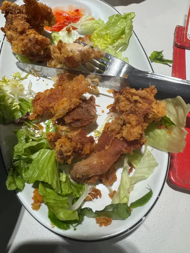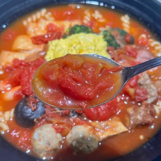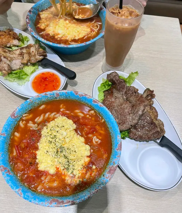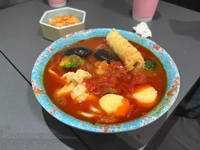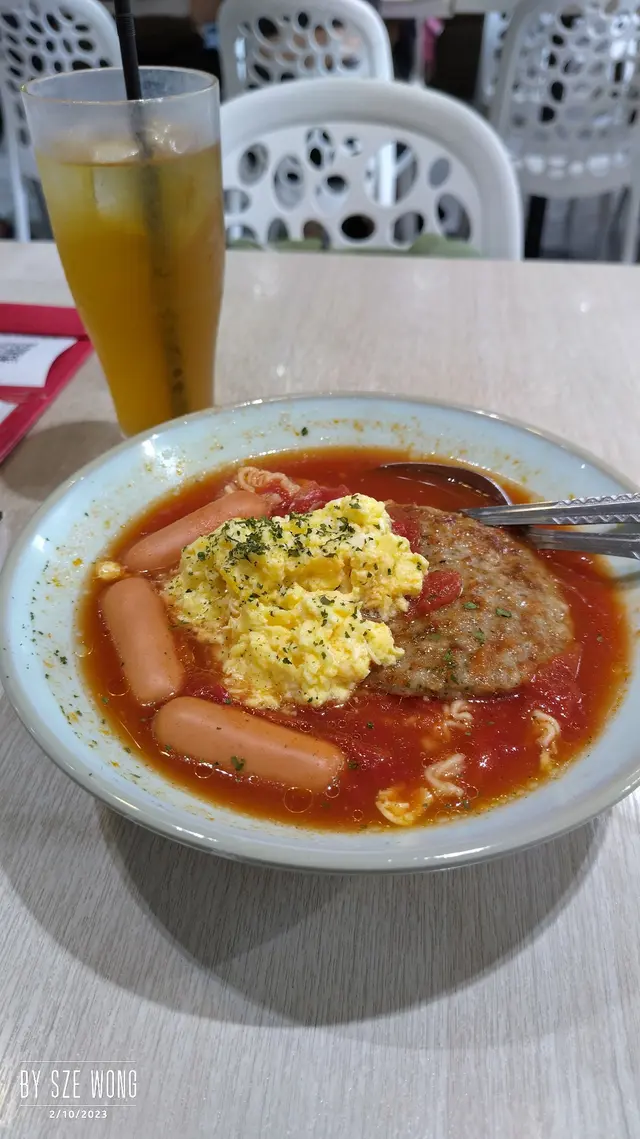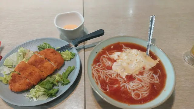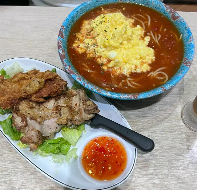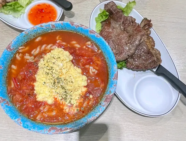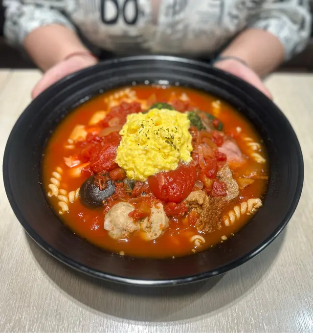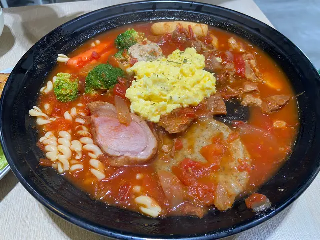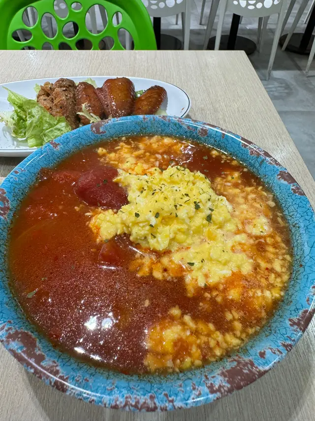 蕃茄,是香港本土派料理的常見食品,所以,有好多餐廳就創做出一系列同蕃茄有關的香港式中、西餐。有一天,我們一家在大埔辦了去旅行前的指定動作後 (安置貓貓到外婆家)﹐就去大埔中心尋食了。而我們遇到的,是其中的一間算是比較有名氣的蕃加料理專門店,《蕃滿門》。有門前,我們發現有素食的選項啊,就立即決定一試了。那天晚上,我們基本上是一人一份餐。而我點的晚市套餐就包一個小食。我讓小朋友去選擇。就這樣,來了一份沙拉雞翼。這是一份香脆的炸雞翼,對任何人來說,不會不好吃。小朋友們,不沾醬了,直接一人一隻。然後來的,是女兒的兒童餐。有一個濃香蕃茄湯,一個肉醬意粉﹛再加了豐富的炸物,有薯條,春卷,腸仔,另有粟米粒同甜品的啫哩。沒花假,全是兒童會喜歡的食物。可是,女兒的食力不夠,而且有少少偏食。蕃茄湯同粟米粒吃剩了。太太點的是他們招牌的蕃茄湯麵食。她點的配搭叫素食主意。而湯底就是香辣蕃茄米線。太太已經叫了少辣,但那湯底依然非常辣。而佐料就主要是西蘭花,椰菜花及一些素食的丸子。而最可愛的,就是附有一件響鈴。有蕃茄的酸甜,又有強勁的辣味道,這湯底,只可以說,夠勁。兒子點的是漢堡扒雙重芝士蕃茄公仔麵。單是在蕃茄蓉上的兩種芝士已經是味道同口感上的大滿足。亦因為這樣,那片原來是整個公仔麵的主食,淪為配角。我點的是蕃茄芝士焗肉醬意粉。肉醬加上蕃茄同芝士,再拿去焗,好難會不好吃。這一個焗肉醬意粉,絕對是勝過連鎖快餐店的出品。最開心當然是沒有 100% 發漲的意大行粉啦。有咀嚼感,有肉醬香,有芝士香同蕃茄香,若再加少少的美極醬油味,就是 110% 的香港原味道。那天晚上,只有我的餐包飲品。當大家在來之前都飲了一杯珍珠奶茶後,我就只點自己喜歡的熱奶茶。感覺,就是一杯正常品質的港式奶茶啊。這一餐,的確是充滿茄的一餐。以甜酸的味道配合各種食物,的確是不會不好吃。加上這餐廳服務好親切,是一家可以多來的小餐廳。…查看更多