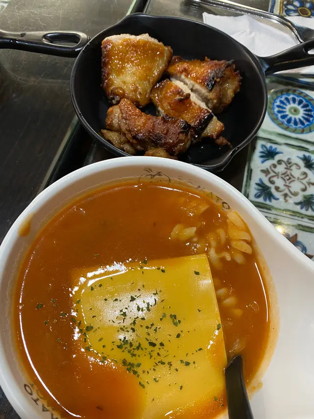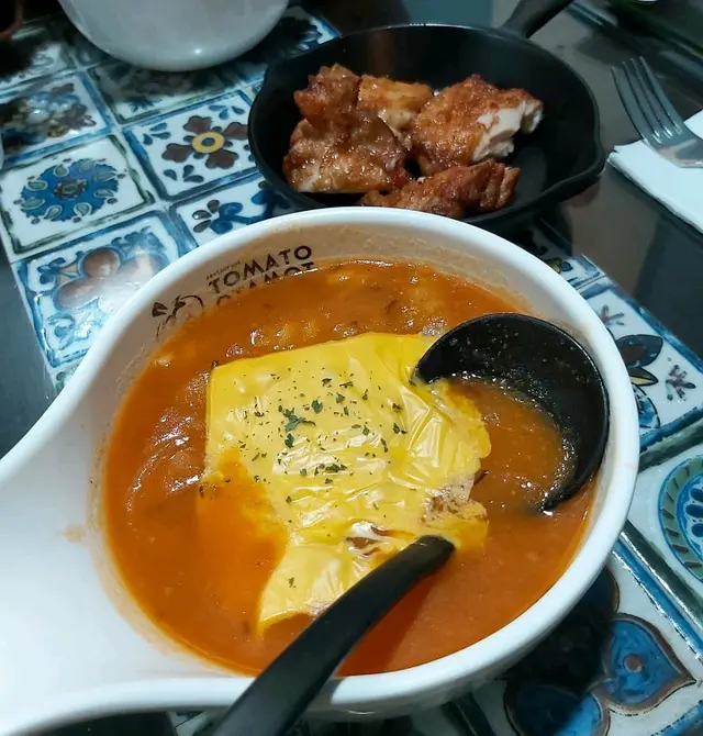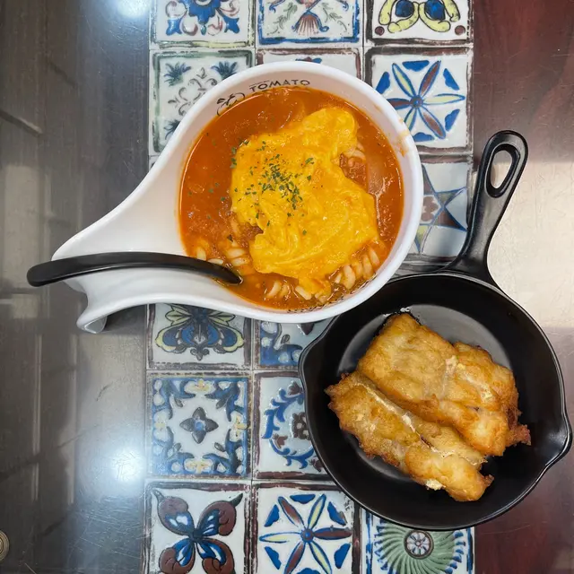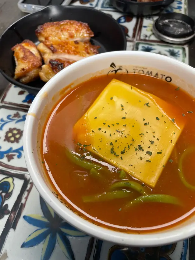 曾經的長期飯堂~🍅﹣﹣﹣﹣﹣﹣﹣﹣﹣﹣﹣﹣﹣﹣﹣﹣屯門店未搬時,食咗年幾都係食同一款茄湯公仔麵肉醬丸子加蟹柳做早餐,自從搬咗去元朗就好少食,早幾日再食先發現,原來又要暫別了😩● 漢堡番茄濃湯烏冬 配香煎雞扒 $58呢個番茄濃湯依然係熟悉嘅味道,湯底有茄肉,少少稠又掛到湯,天然嘅酸甜味真係當湯飲都得!🍅加埋4大嚿雞扒,外皮煎得非常香脆,而咬落去係嫩滑多汁,雞扒出色到每食一嚿都要讚一次好食🥺○ 自家鮮茄咖喱牛脷焗飯 $82鮮茄同咖哩好夾!濃郁咖喱汁夾雜住茄粒同茄汁,一啖食到兩隻味!有番茄令成個飯唔會太滯,我仲越食越開胃🤤焗飯雖然貴啲但都落重料,飯有炒底,有拉芝,牛脷有成8粒咁多,而且每一啖都係keep住有醬咁食,醬多過飯咁滯!👍🏻性價比極高嘅餐廳 少一間都好可惜🤧希望快啲重開可以有機會再食到❤️🔥﹣﹣﹣﹣﹣﹣﹣﹣﹣﹣﹣﹣﹣﹣﹣﹣蕃茄濃湯專門店元朗建業街61號地下…查看更多