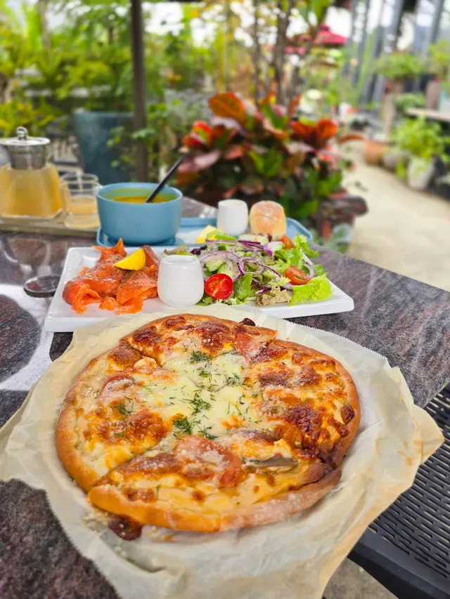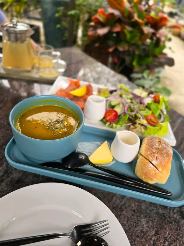 今天,我帶著狗狗Churro來到一個美妙的有機餐廳Innolife「蕉徑休閒」,這裏提供多種美味健度的有機菜式。我們品嚐了煙三文魚沙律、有機香草蘑菇煙肉意粉、燒牛肉沙律潛艇等食品,享用了一頓豐盛的午餐,狗狗十分開心,體驗非常難忘!步入Innolife「蕉徑休閒村」,感覺就像世外桃源,有小池流水,養着巴西龜;進入室內餐廳前,沿路有很多花花草草,亦有亮麗花叢伴隨的戶外座!除了餐廳的三隻狗狗,Churro更遇上了不少狗朋友!我們首先吃了煙三文魚沙律($128),是一道輕盈而豐富的菜品。新鮮的三文魚搭配新鮮的蔬菜和美味的醬汁,帶來一種清新而美味的口感。這是一道完美的夏天沙律。接下來是有機蕃茄羅宋湯($68)。這道羅宋湯採用的都是新鮮有機的蕃茄,賦予湯品醇厚而濃郁的湯底。蕃茄的自然酸甜完美平衡,不會過於酸澀,配上軟熟的麵包吃用,有一種怡人的香氣。至於有機香草蘑菇煙肉意粉($108)非常美味。有機的香草和蘑菇提供豐富風味,而煙肉的鹹香使得整道菜更加豐富。意粉煮得恰到好處,彈牙有嚼勁。每一口都能品味到新鮮的食材和濃郁的香味,給人滿足的感覺。而燒牛肉沙律潛艇($68)是一道絕佳的選擇。軟綿的麵包配上燒牛肉、新鮮蔬菜和美味的醬汁,給人一種豐富的口感。每一口都充滿融合在一起的美味風味。甜品我們要了焦糖布丁($48)及自家芝士蛋糕($48)。這個焦糖布丁是絕對的絕品!它的質地濃稠而柔軟,每一口都充滿了濃郁的焦糖風味。它的甜度適中,給人一種美妙的口感體驗。而自家製芝士蛋糕則令我驚艷。它的質地輕盈而綿密,芝士的味道濃郁而不膩,讓人一口接一口,無法停止。蜂蜜檸檬梳打($39)非常清涼和爽口。檸檬的酸度和蜂蜜的甜味完美平衡,帶來了一種令人愉悅的口感。雪梨紅菜頭蔬果汁($39)剛營養豐富,帶來了天然的甜味,口感清新,讓人感到健康和活力。在這個有機餐廳享用美食的經歷真是愉快。所有的食物都以新鮮、有機為基礎,味道出色且營養豐富。而這裏的環境非常宜人,綠樹環繞,空氣清新,讓我和我的狗狗都感到舒適和放鬆。非常值得推薦!蕉徑休閒村 (上水)地址:上水蕉徑村蕉徑路DD100 Lot1372…查看更多